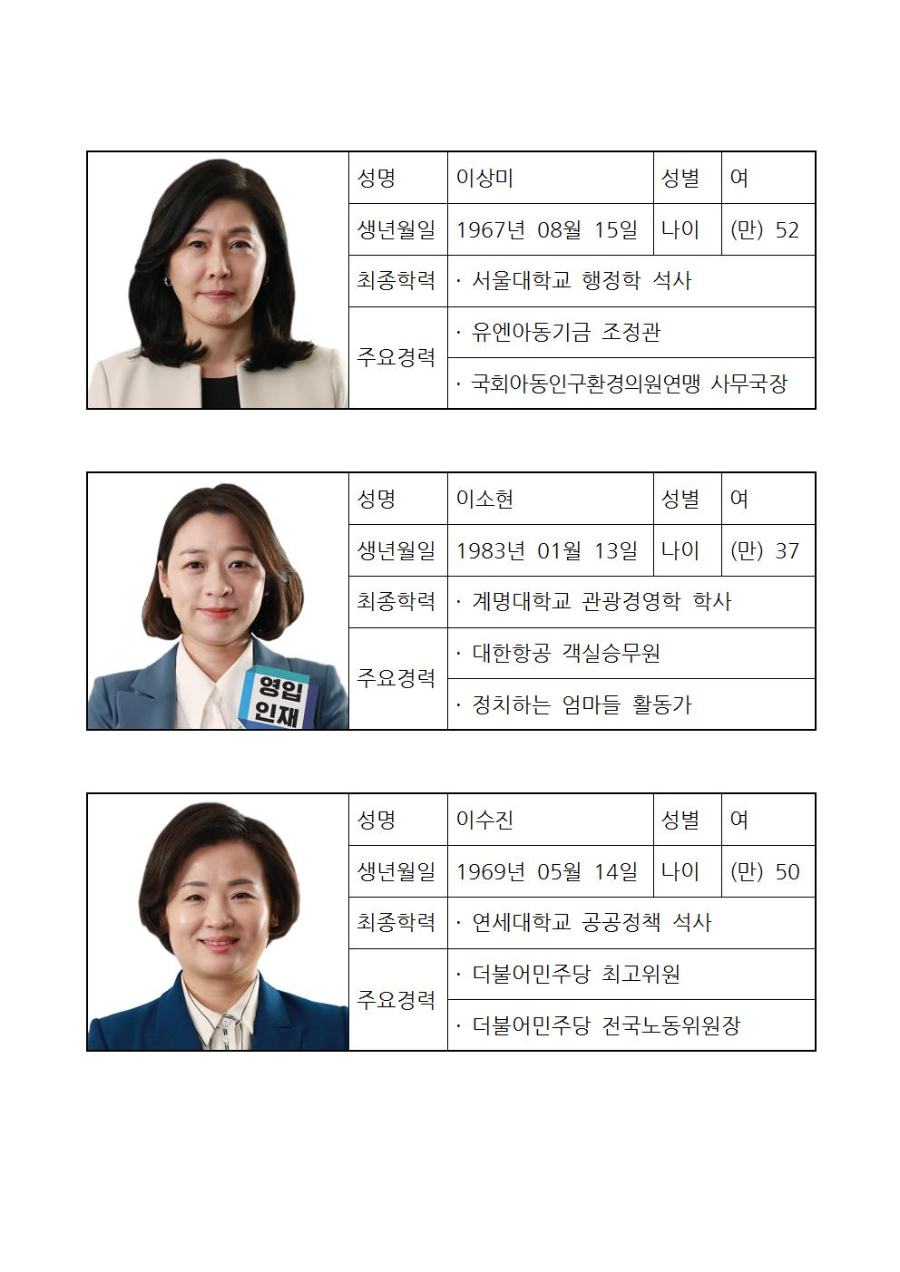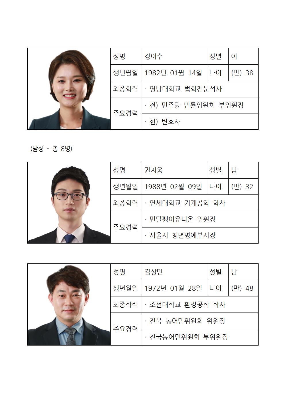 더불어민주당 제21대 비례대표국회의원선거 중앙위원회 순위투표 후보자 명단