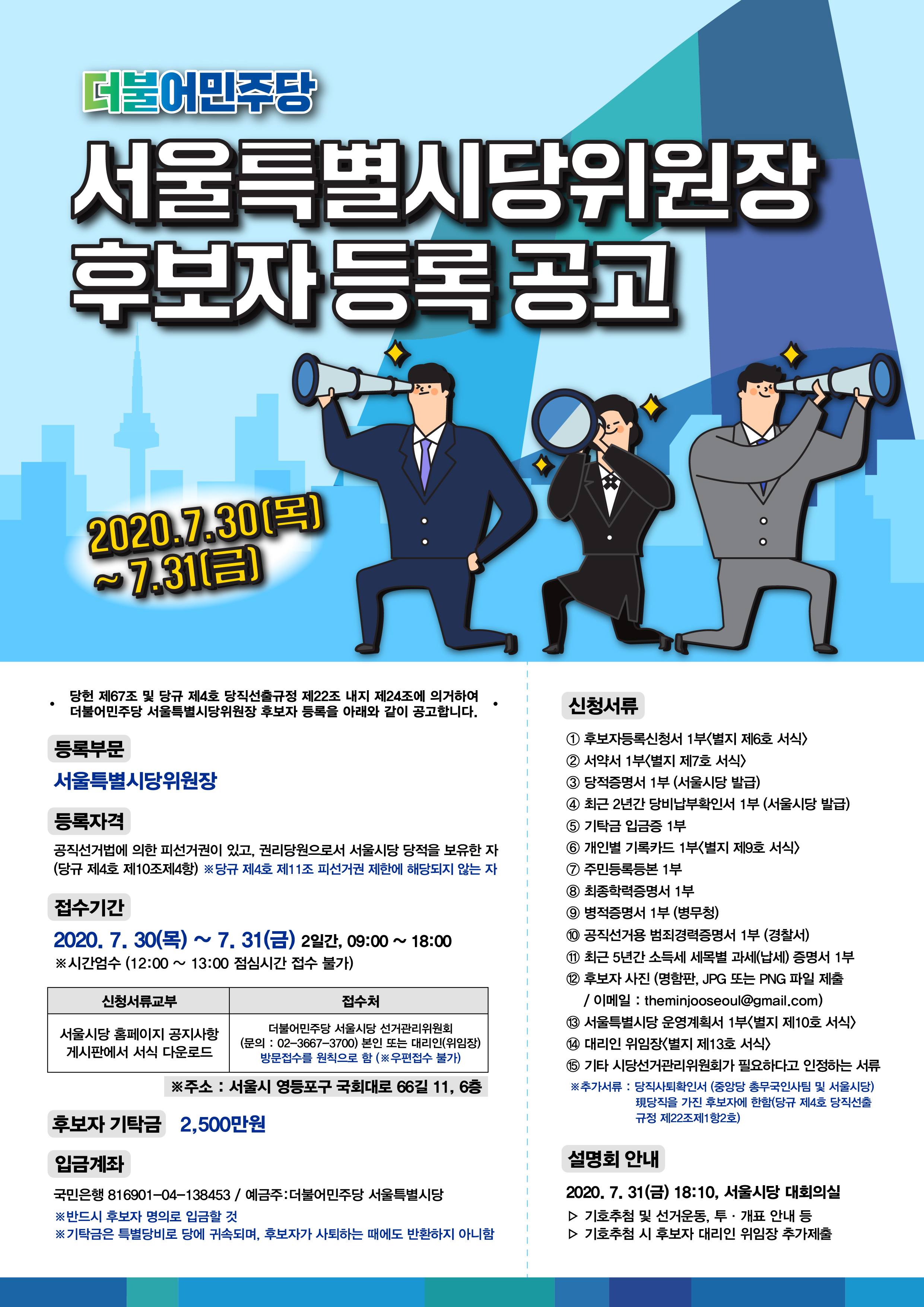 더불어민주당 서울특별시당 위원장 후보자 등록 공고