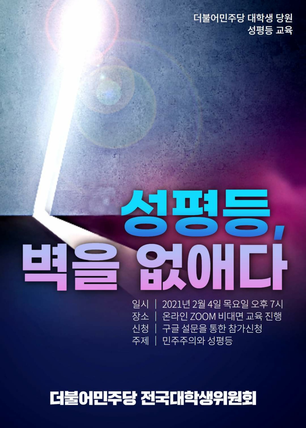 전국대학생위원회 주최 더불어민주당 대학(원)생 성평등 교육 안내
