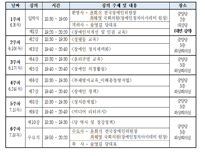 전국장애인위원회 장애인정치아카데미 모집공고 |