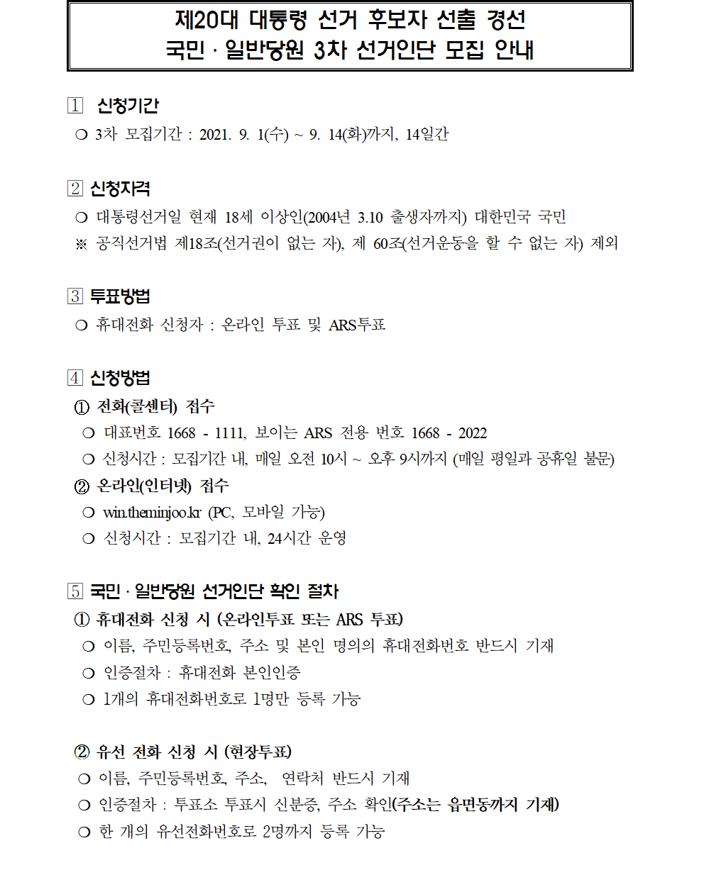 3차 국민·일반당원 선거인단 열람 및 이의신청 안내