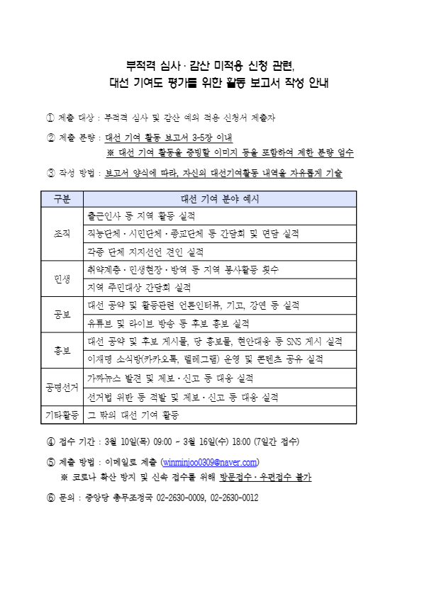 제20대 대통령선거 기여도 평가 시행 안내 (부적격 심사·감산 예외 적용 신청 대상)