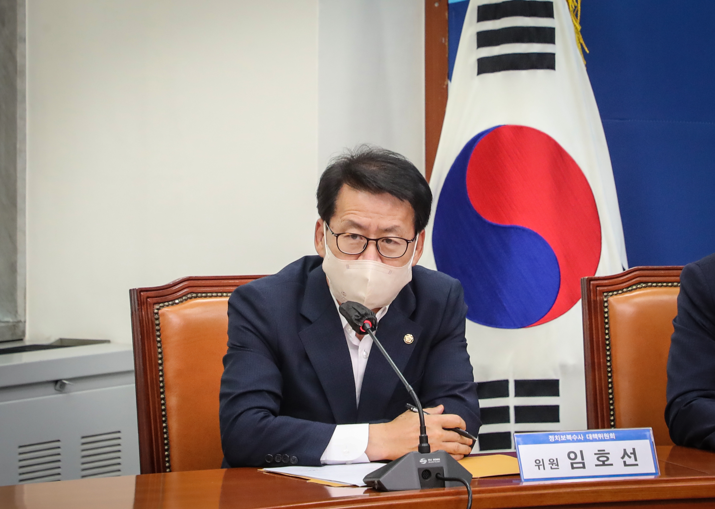 우상호 비대위원장이 2022.08.01.(월) 국회 본청 비대위원장회의실에서 열린 정치보복수사대책위원회의에 참석하여 모두발언을 하고 있다.