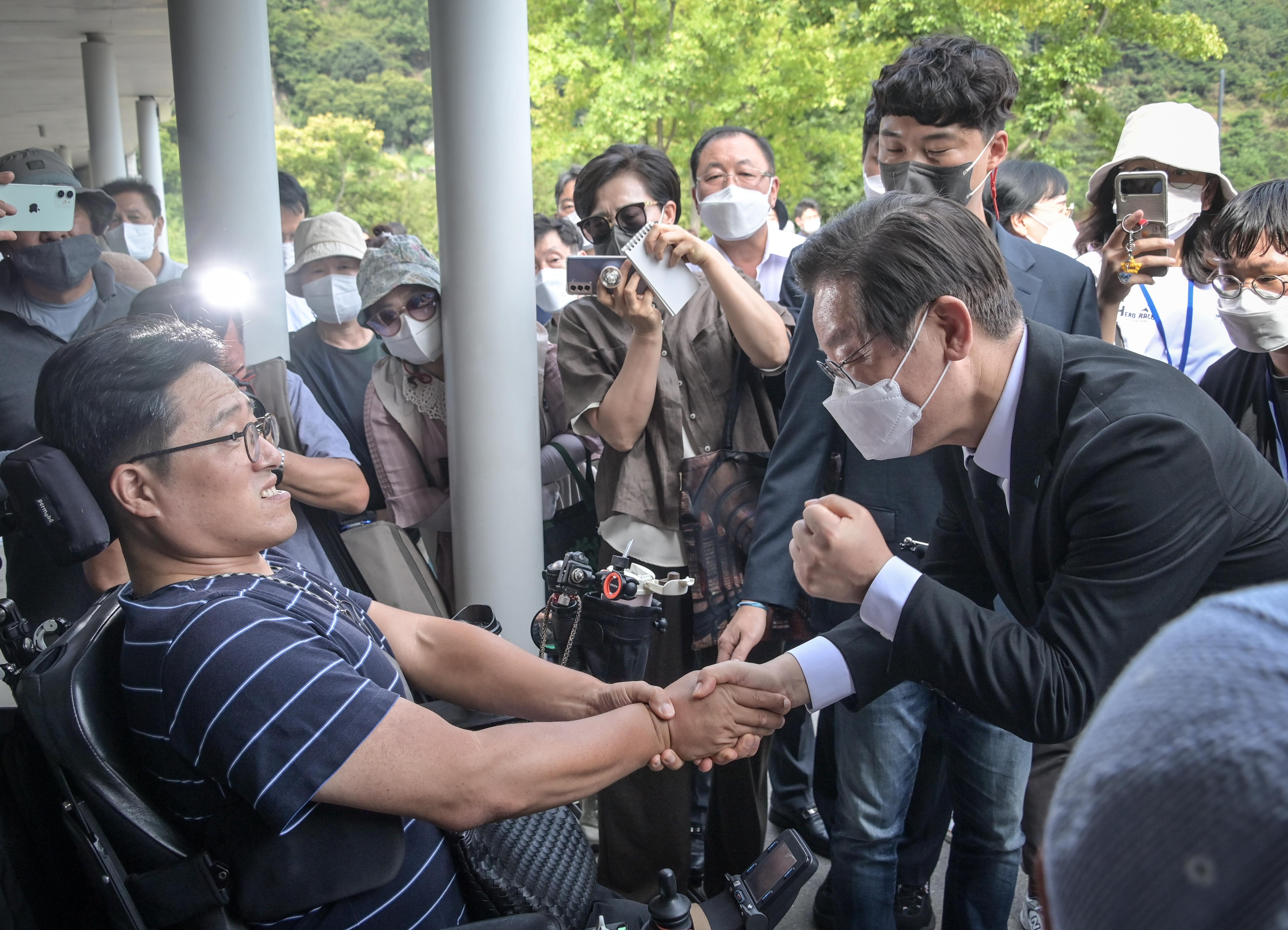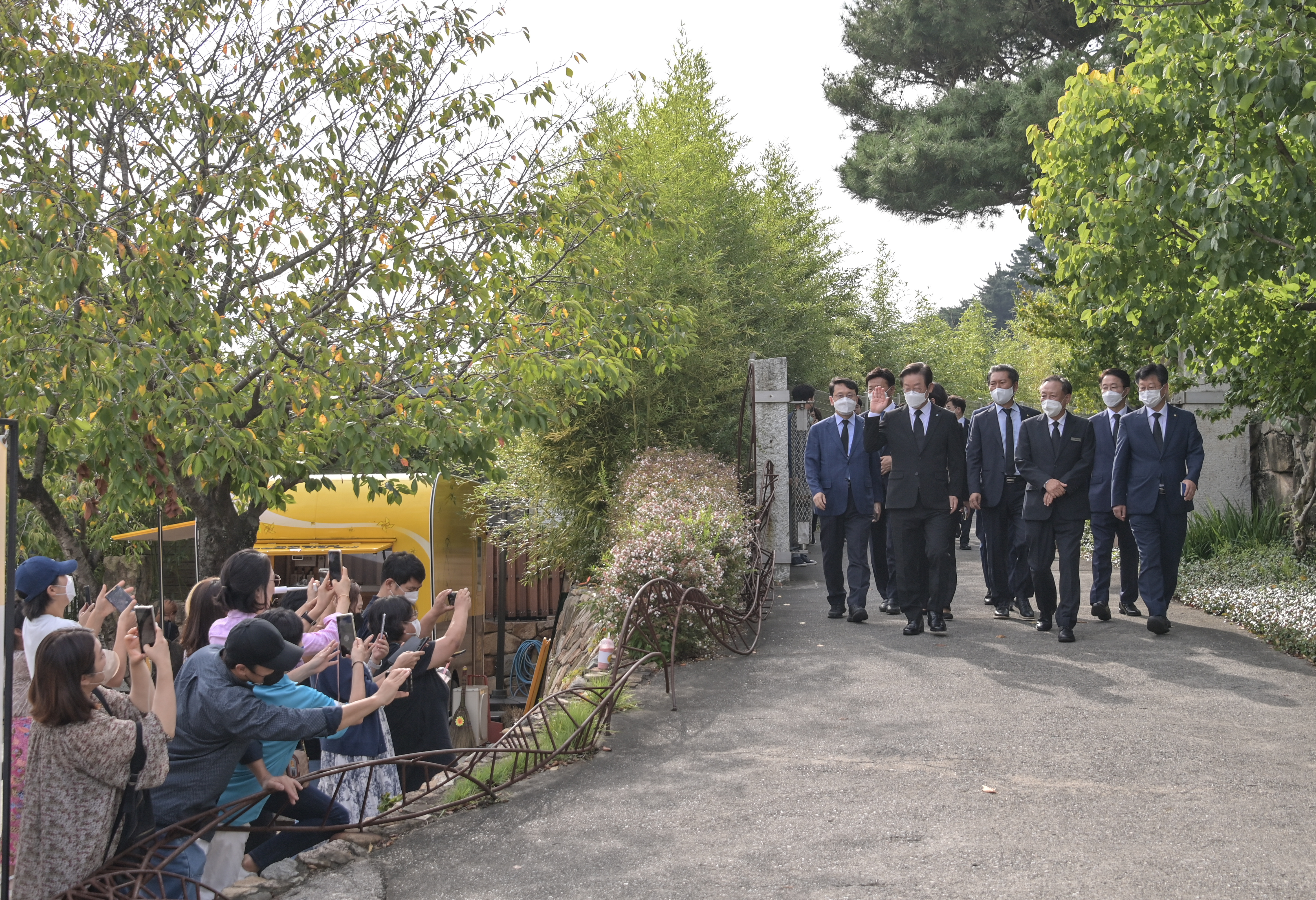 이재명 당대표가 2022.09.14.(수) 김해 봉하마을에 방문하여 故 노무현 대통령 묘역 참배를 드리고 있다.