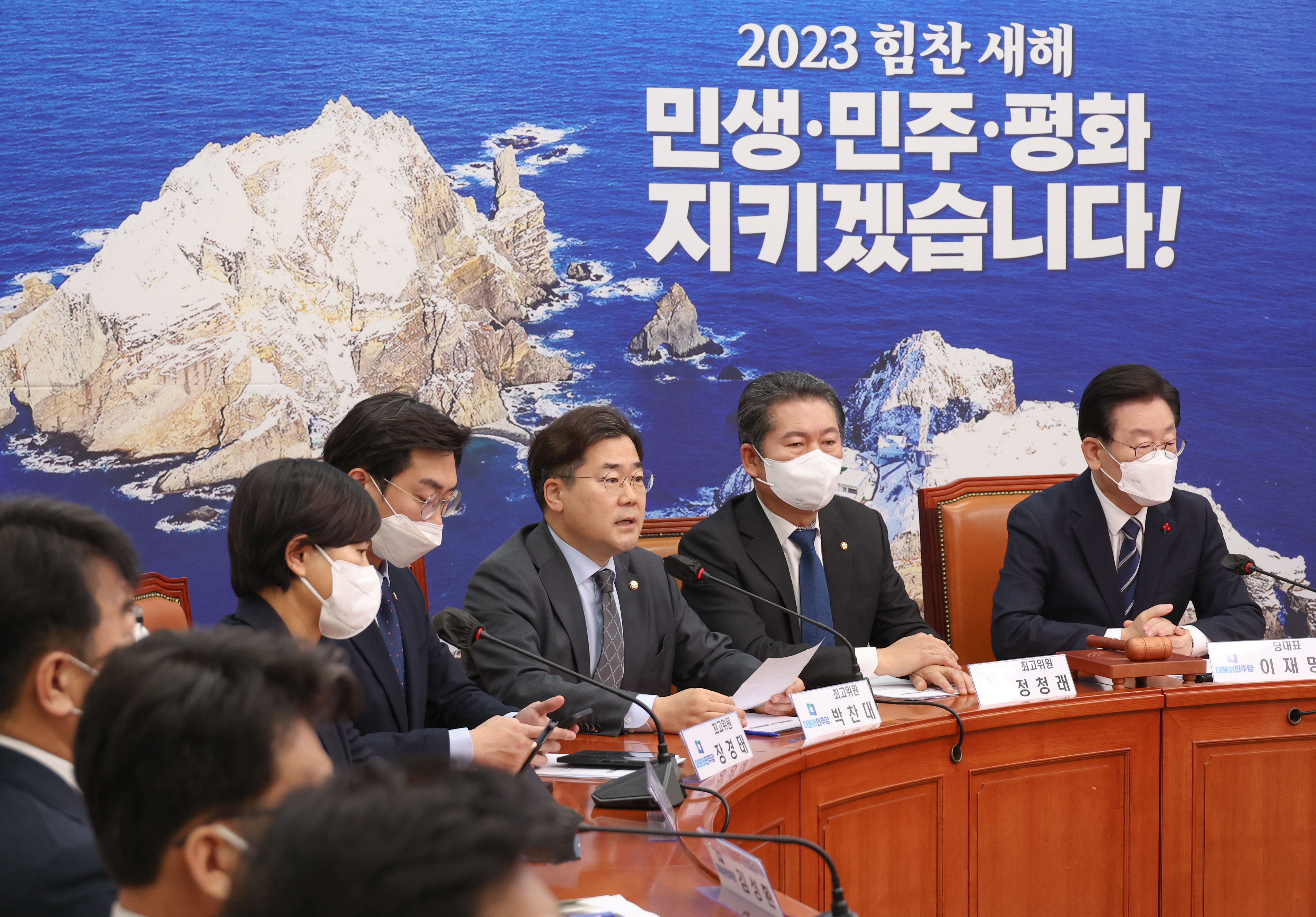 이재명 당대표가 2023.01.09.(월) 국회 본청 당대표 회의실에서 열린 최고위원회의에 참석하여 모두발언을 하고 있다.
