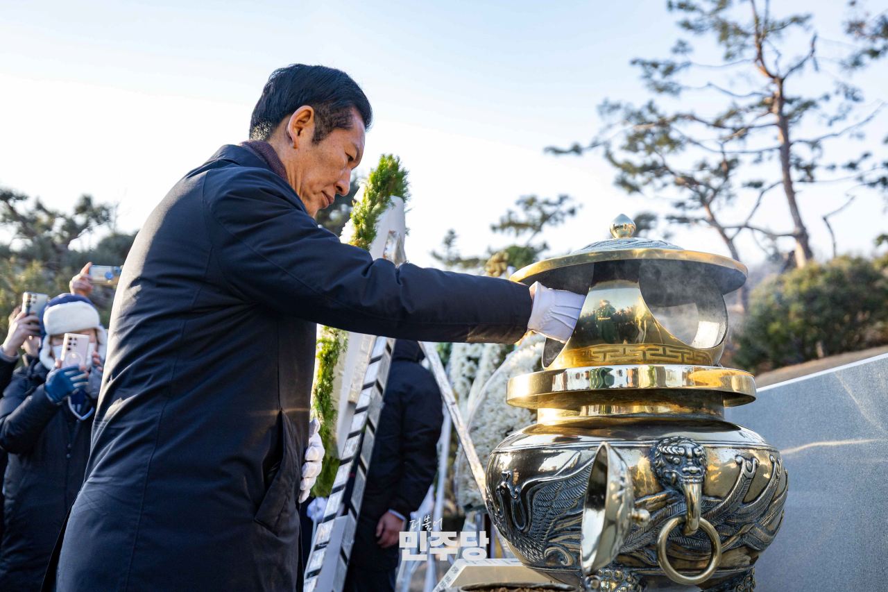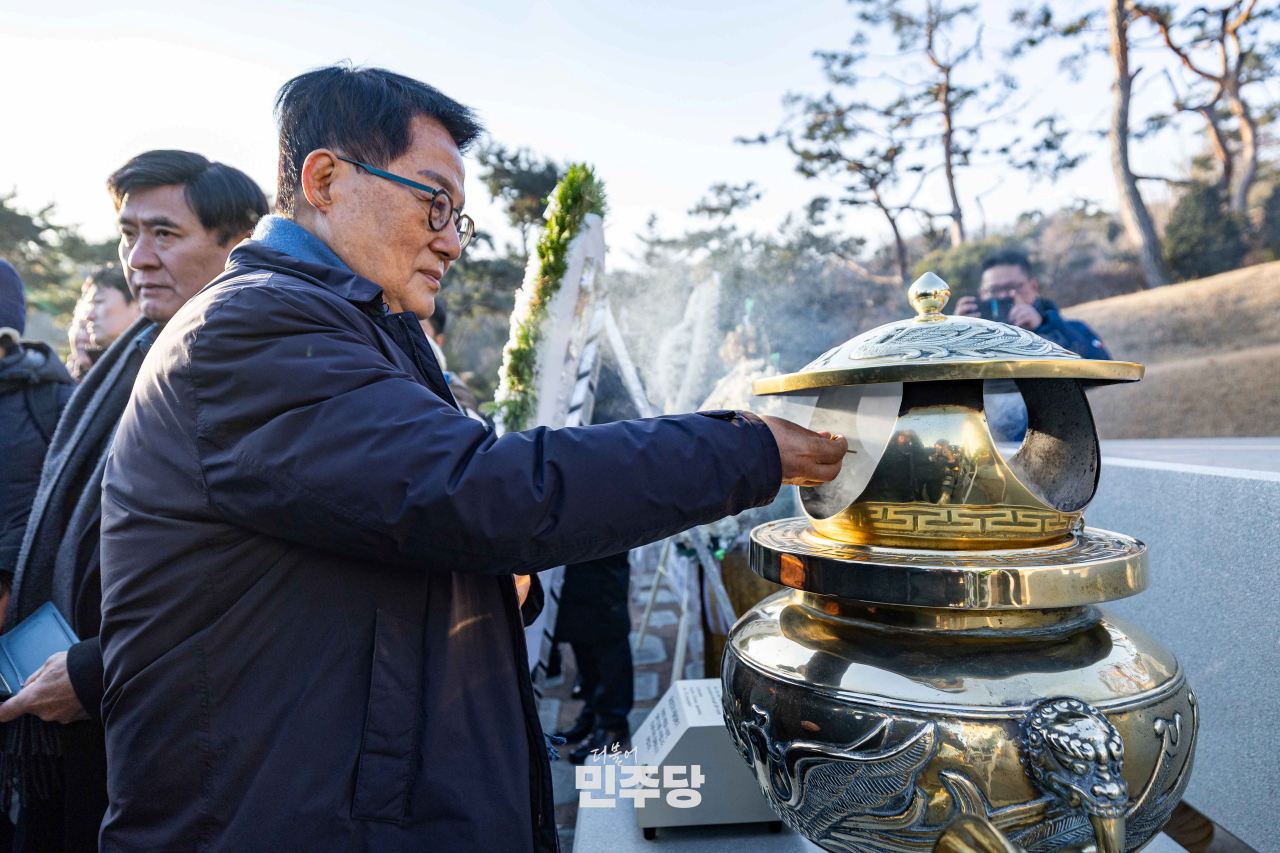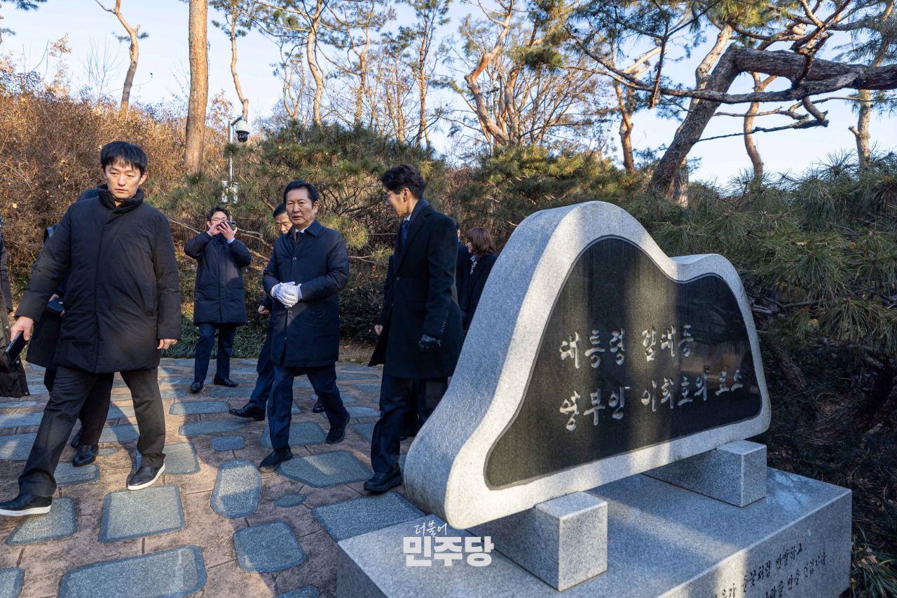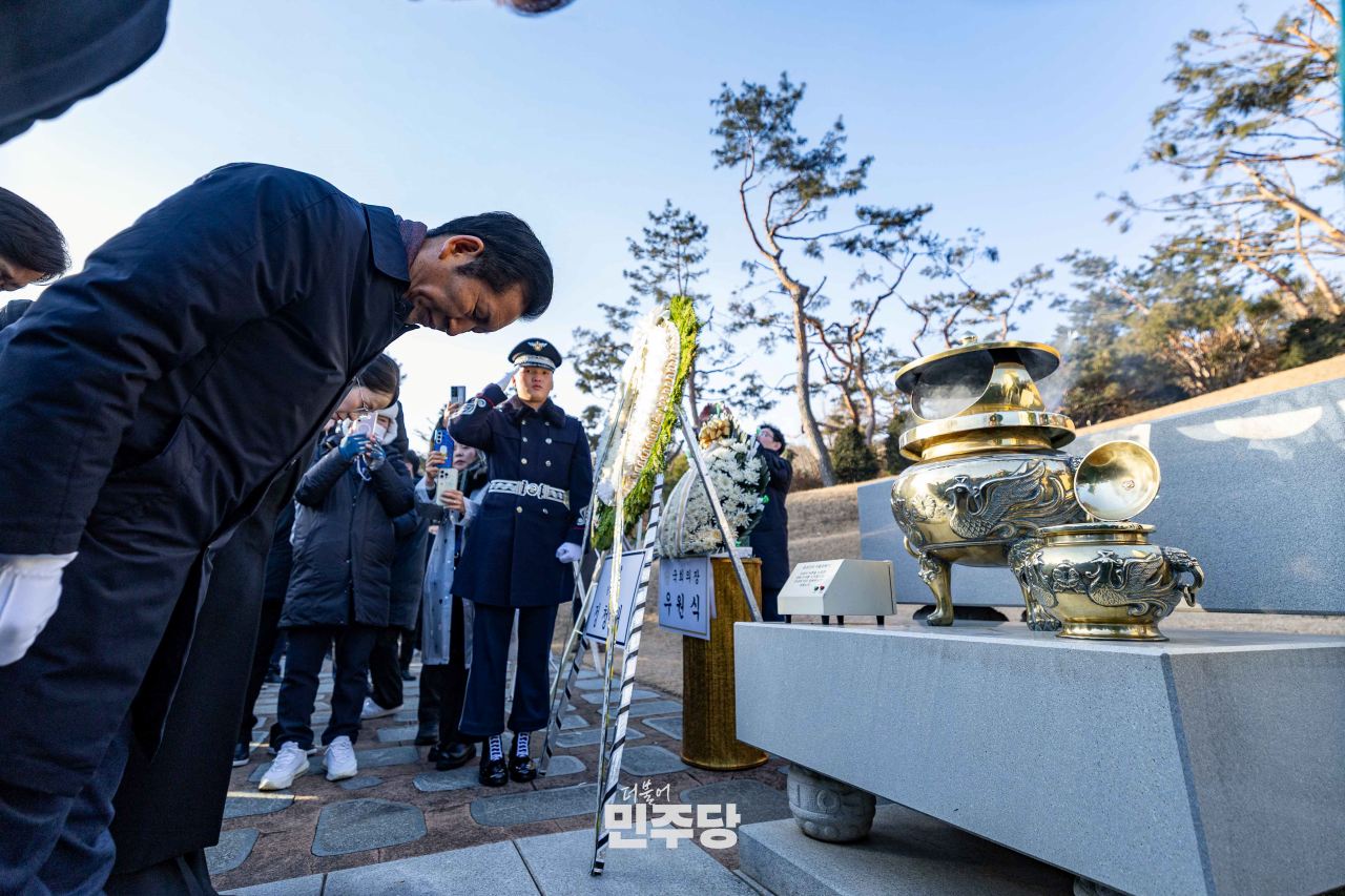 정청래 당대표 및 지도부가 2026.01.01.(목) 서울 동작구 국립서울현충원에 위치한 김대중 前 대통령 묘역에서 참배를 하고 있다.