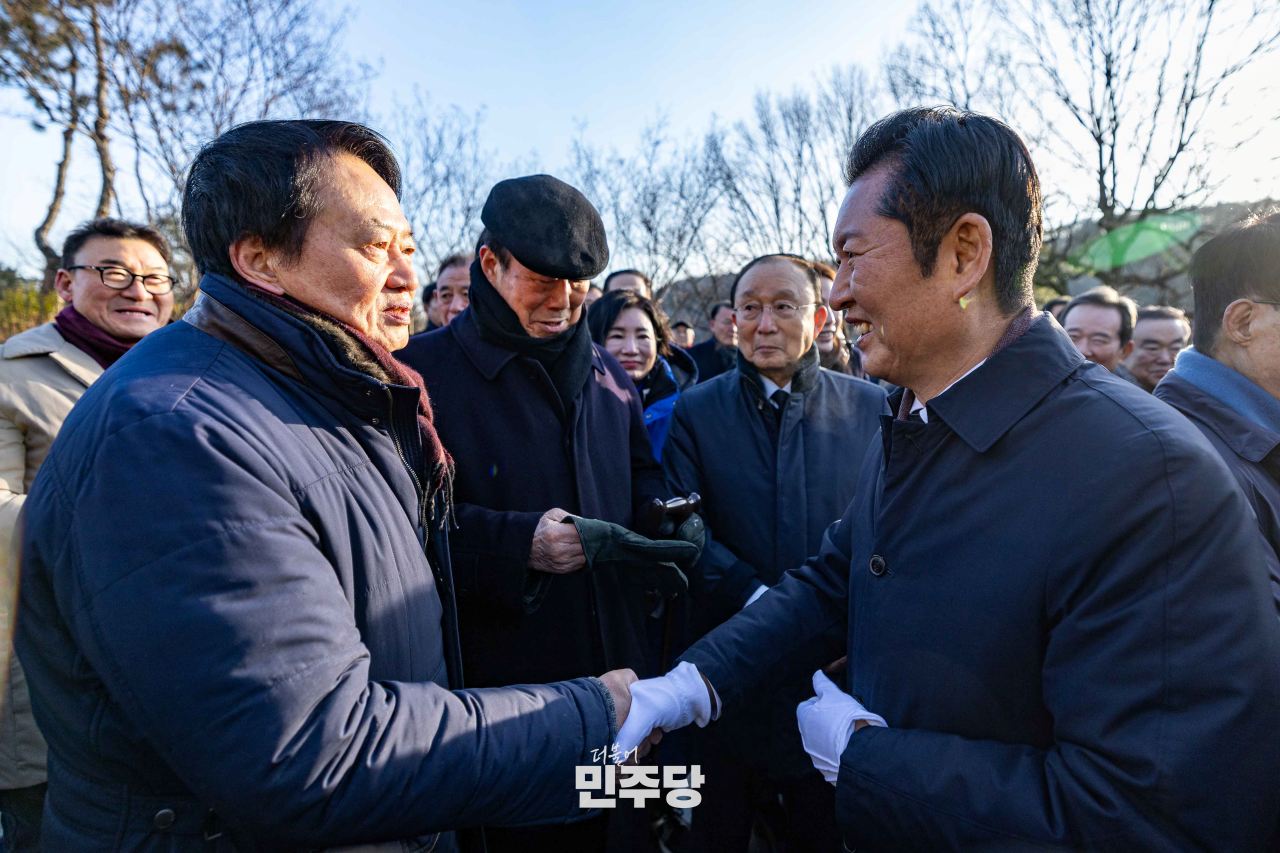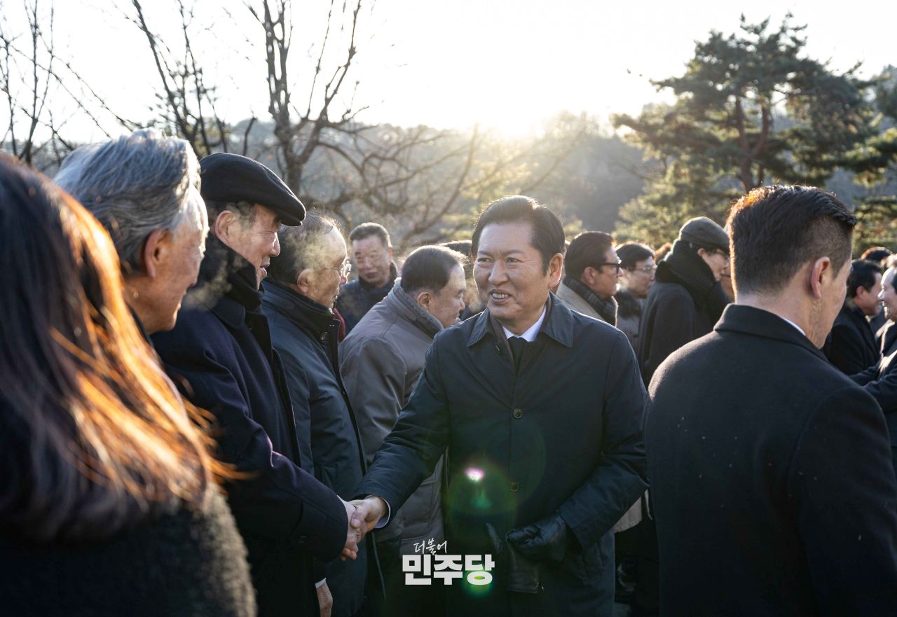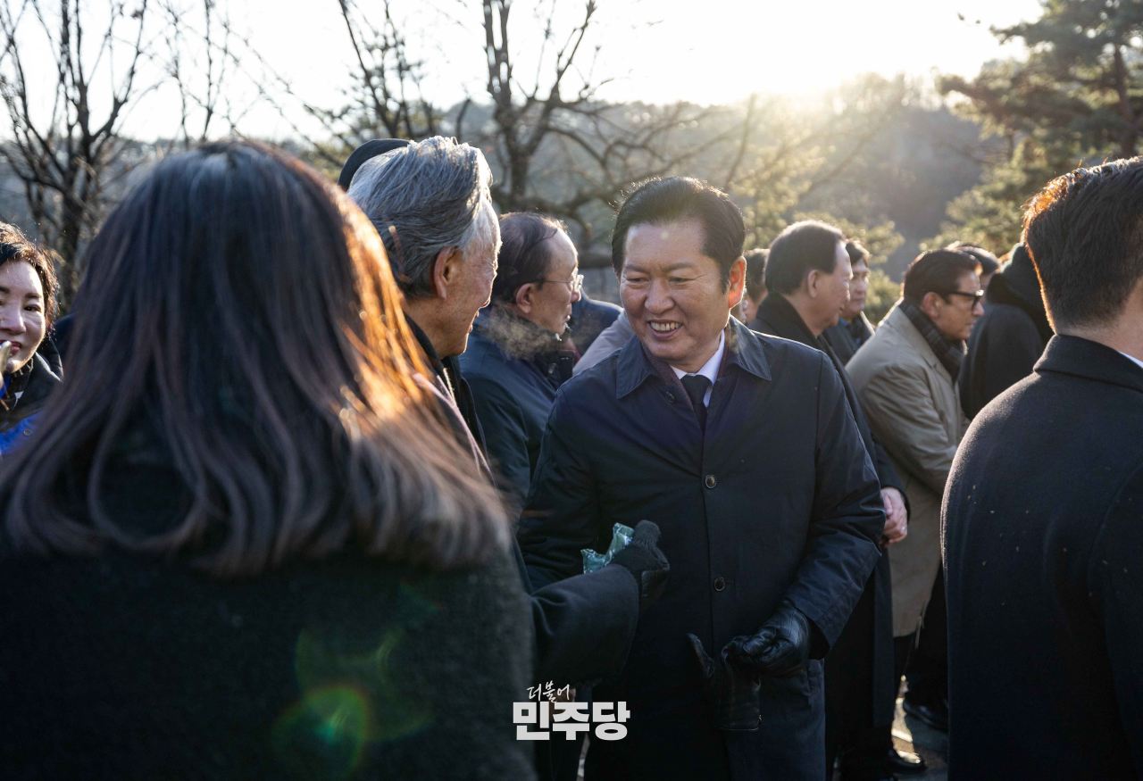 정청래 당대표 및 지도부가 2026.01.01.(목) 서울 동작구 국립서울현충원에 위치한 김대중 前 대통령 묘역에서 참배를 하고 있다.