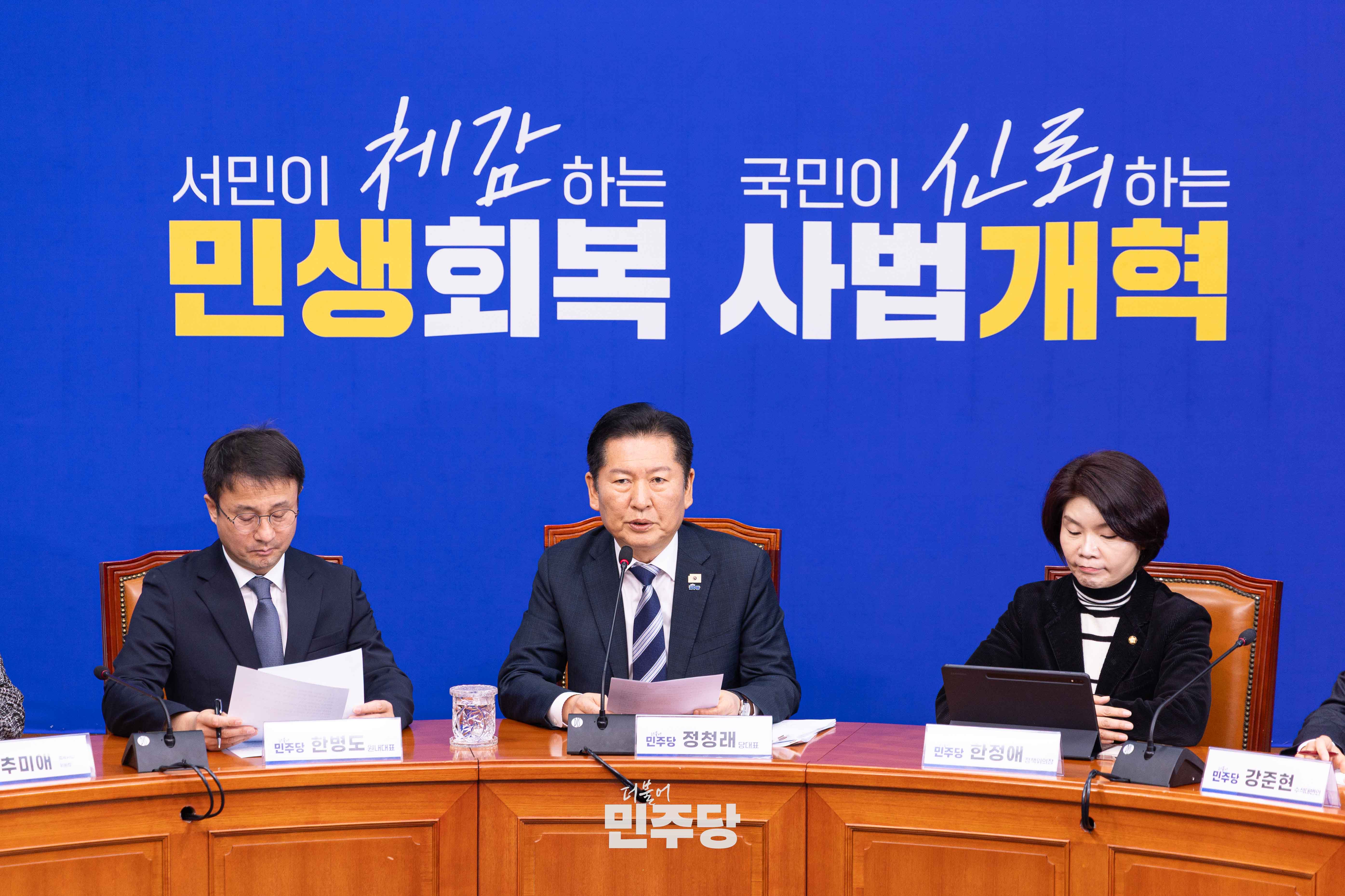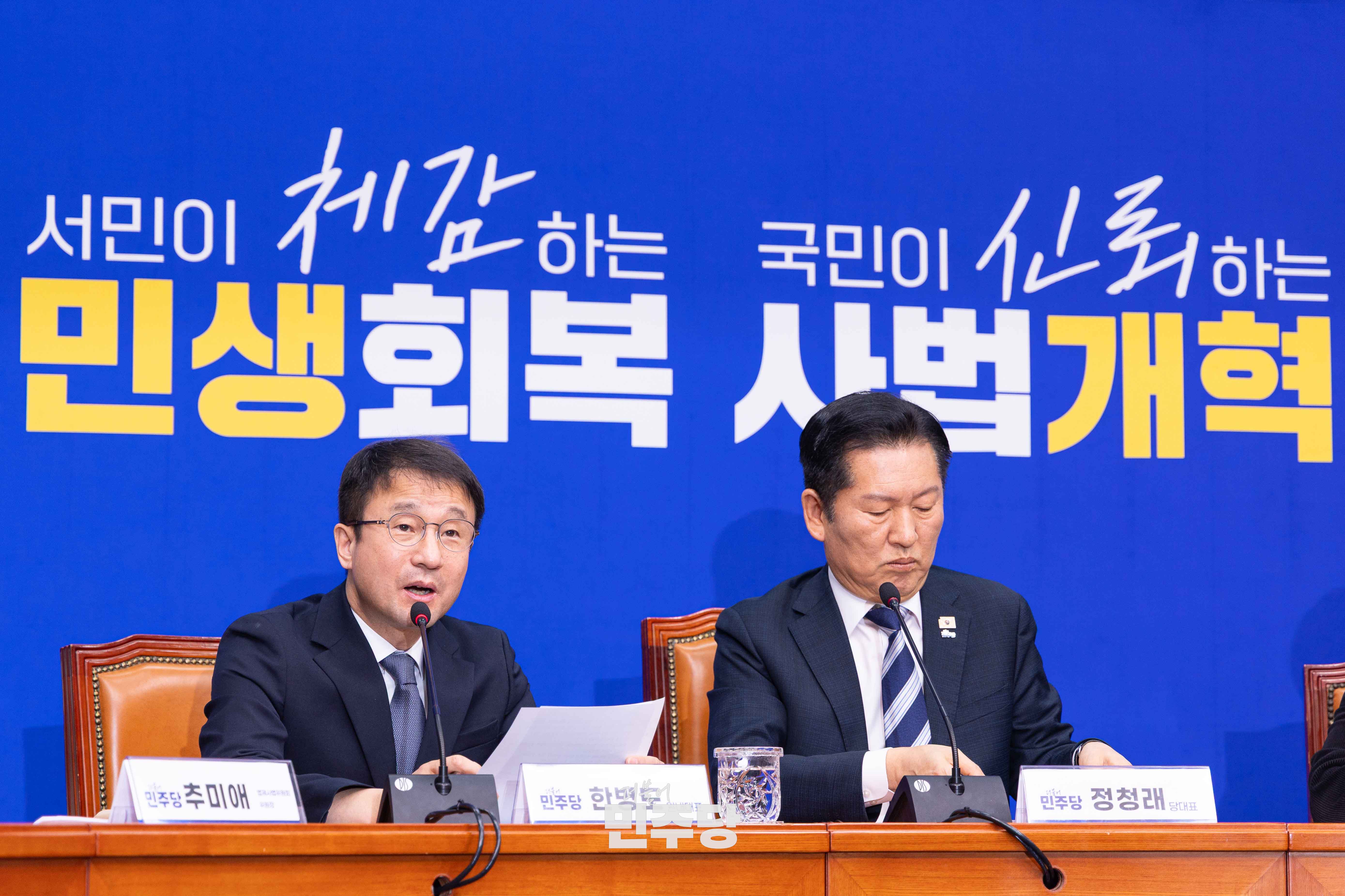 정청래당대표가 2026.03.17.(화) 국회 본청 당대표회의실에서 검찰개혁 관련 긴급 기자회견을 하고 있다.