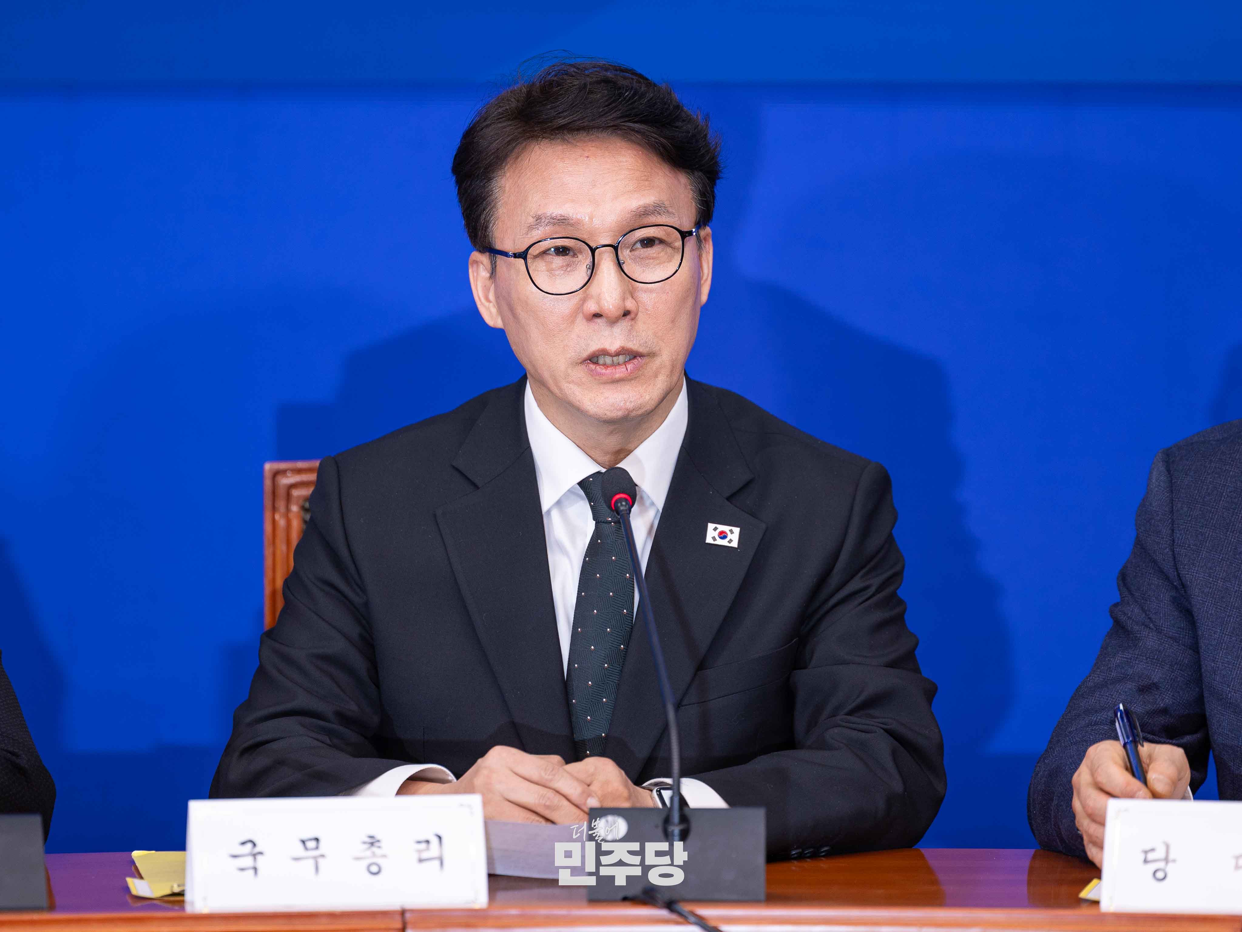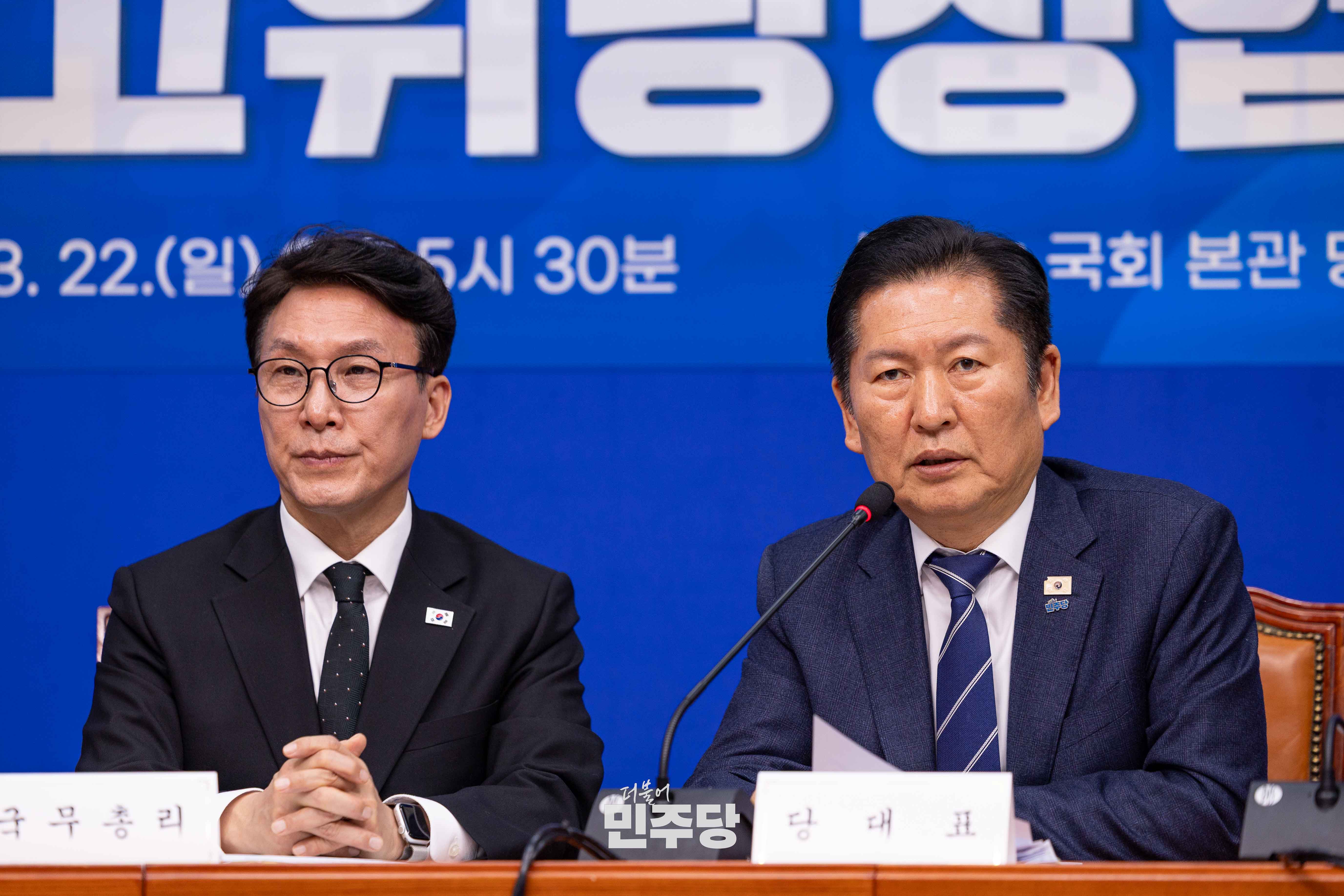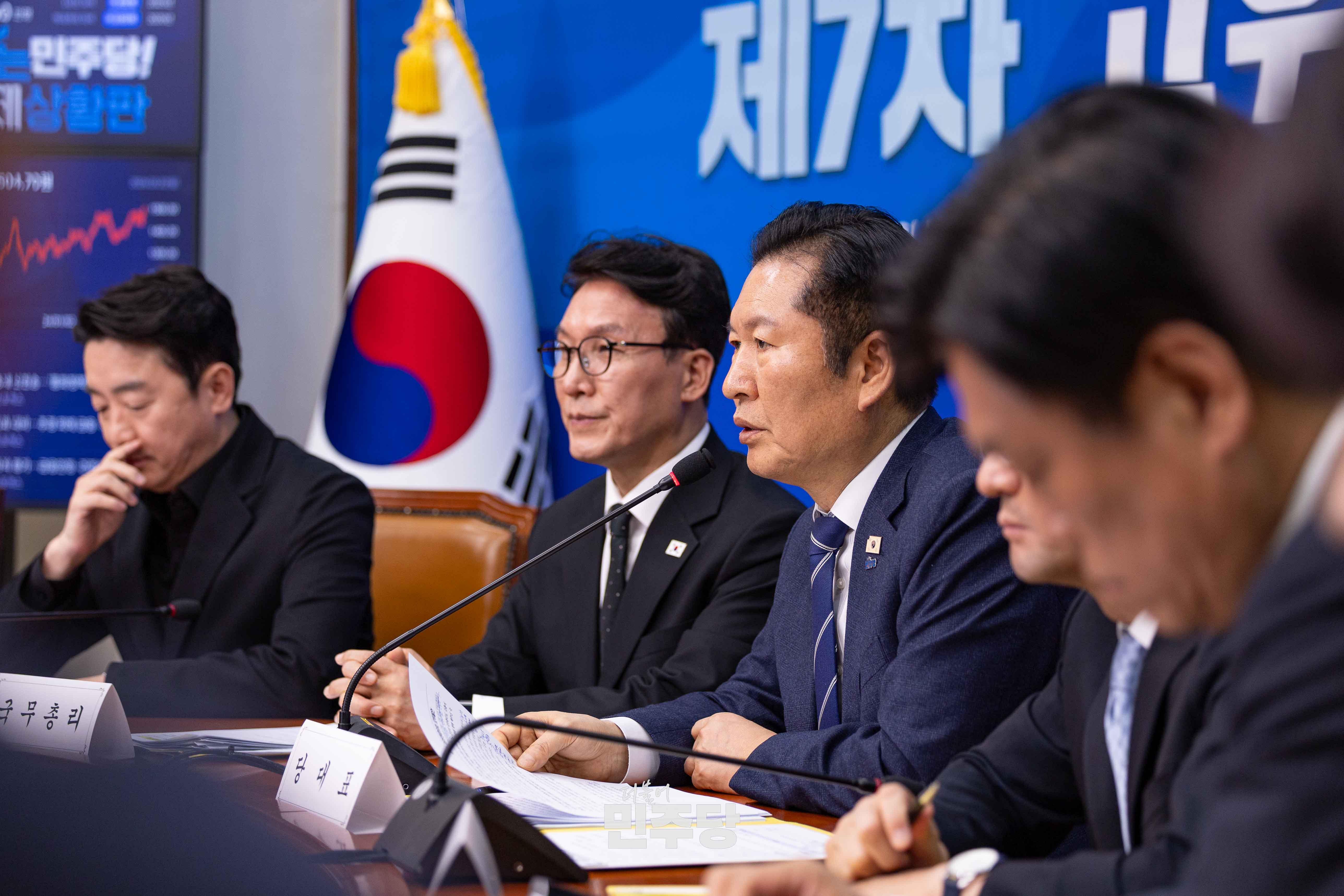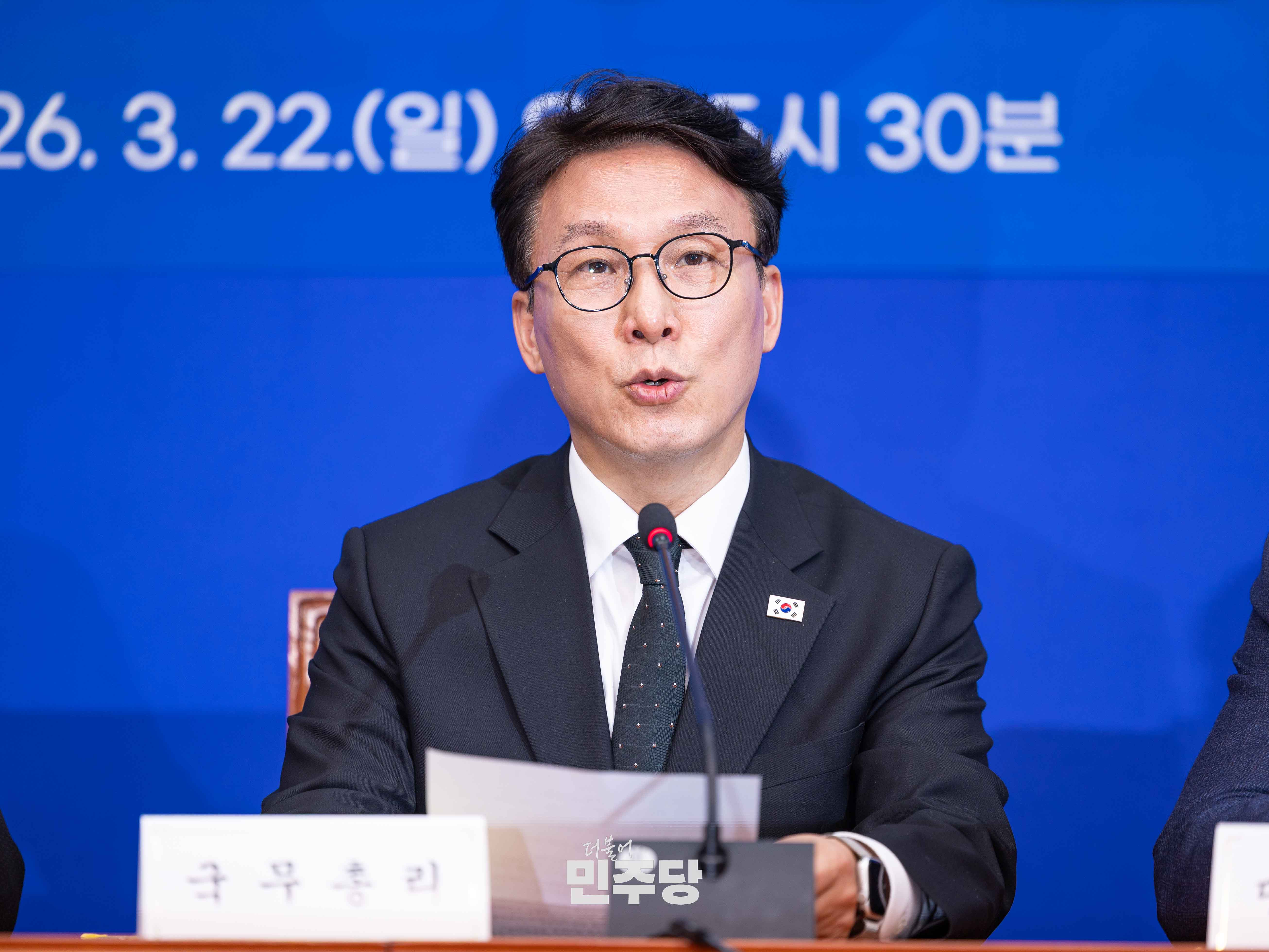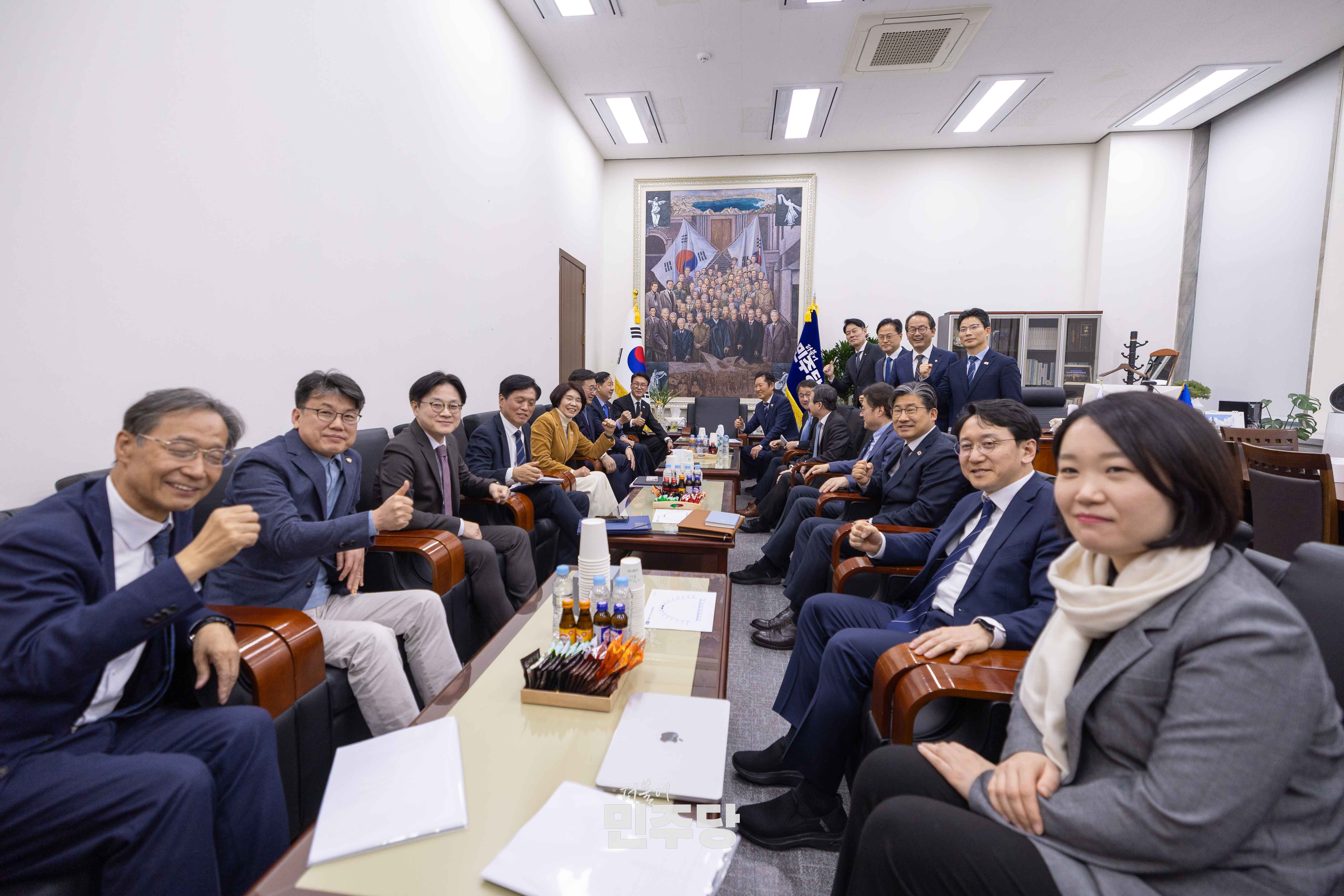 정청래 당대표가 2026.03.22.(일) 국회 본청 당대표회의실에서 진행된 제7차 고위당정협의회에 참석하여 기념촬영을 하고 있다.