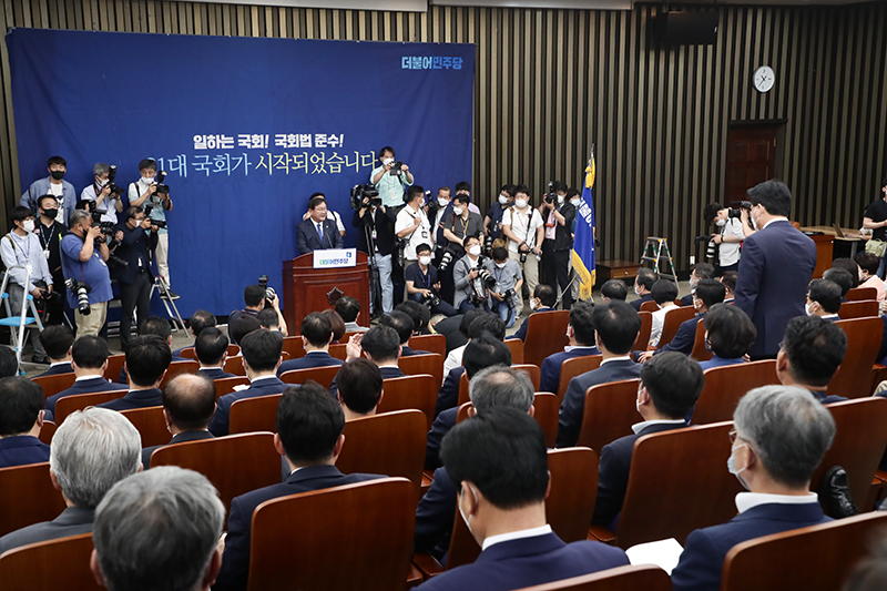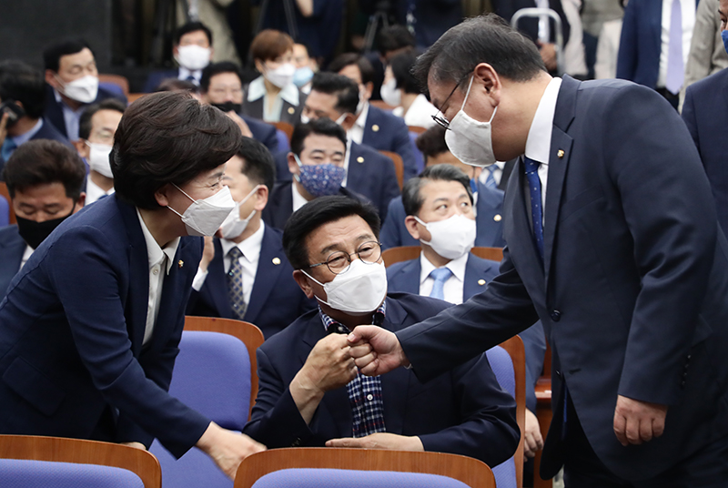 이해찬 당대표가 2020.06.08.(월) 국회 본청 246호에서 열린 의원총회에 참석하여 모두발언을 하고 있다.