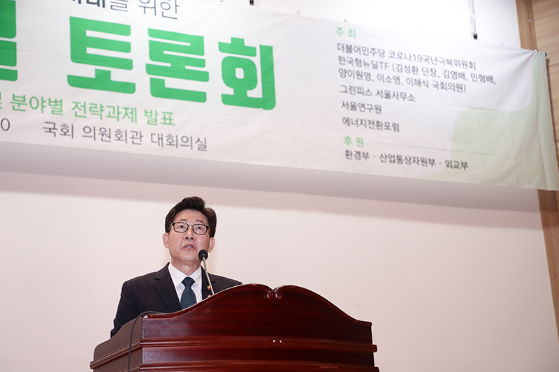 이해찬 당대표가 2020.06.10.(수) 국회 의원회관 대회의실에서 열린 기후위기 극복-탄소제로시대를 위한 그린뉴딜 토론회에 참석하여 기념촬영을 하고 있다.