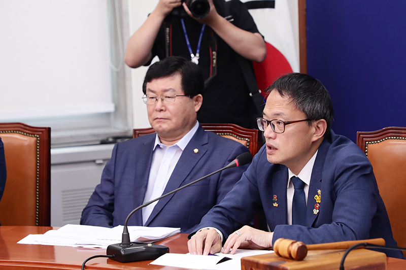 이해찬 당대표가 2020.07.08.(수) 국회 당대표 회의실에서 열린 최고위원회의에 참석하여 모두발언을 하고 있다.
