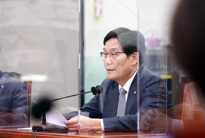이낙연 당대표가 2020.11.02.(월) 국회 당대표 회의실에서 열린 최고위원회의에 앞서 코리아세일페스타의 성공을 기원하는 퍼포먼스를 최고위원들과 함께 하고 있다.