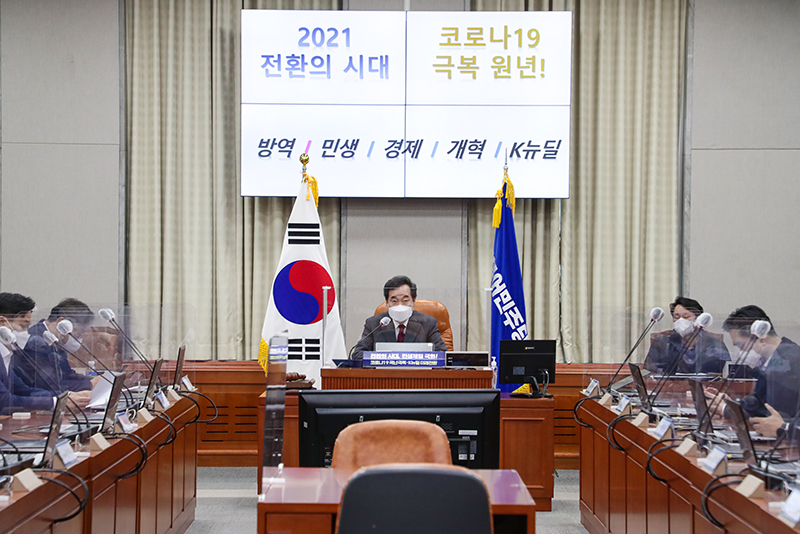 이낙연 당대표가 2021.01.27.(수) 국회 319호에서 열린 화상 정책의원총회를 주재하고 있다.