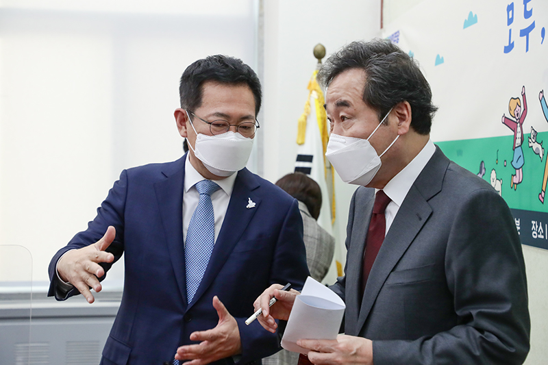 이낙연 당대표가 2021.02.24.(수) 국회 당대표회의실에서 열린 소확행위원회 반려동물 동행시설 안내협약식에 참석하여 기념촬영을 하고 있다.