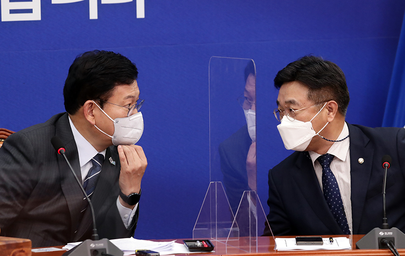 송영길 당대표가 2021.05.21.(금) 국회 당대표회의실에서 열린 최고위원회의를 주재하고 있다.