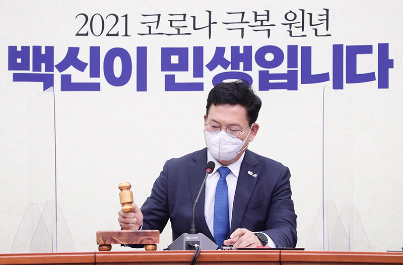 송영길 당대표가 2021.06.04.(금) 국회 당대표회의실에서 최고위원회의를 주재하고 있다.