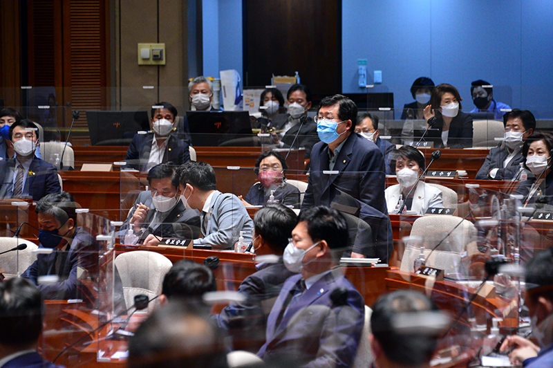 송영길 당대표가 2021.06.22.(화) 국회 예결위장에서 열린 의원총회에 참석하여 모두발언을 하고 있다.