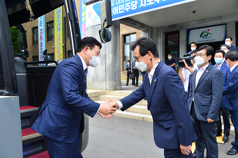 송영길 당대표가 2021.07.06.(화) 충북 청주시에 위치한 충북도청에서 열린 충청북도 예산정책협의회에 참석하여 모두발언을 하고 있다.