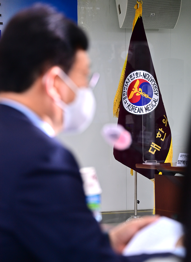 송영길 당대표가 2021.10.07.(목) 용산구에 위치한 대한의사협회에 방문하여 기념촬영을 하고 있다.
