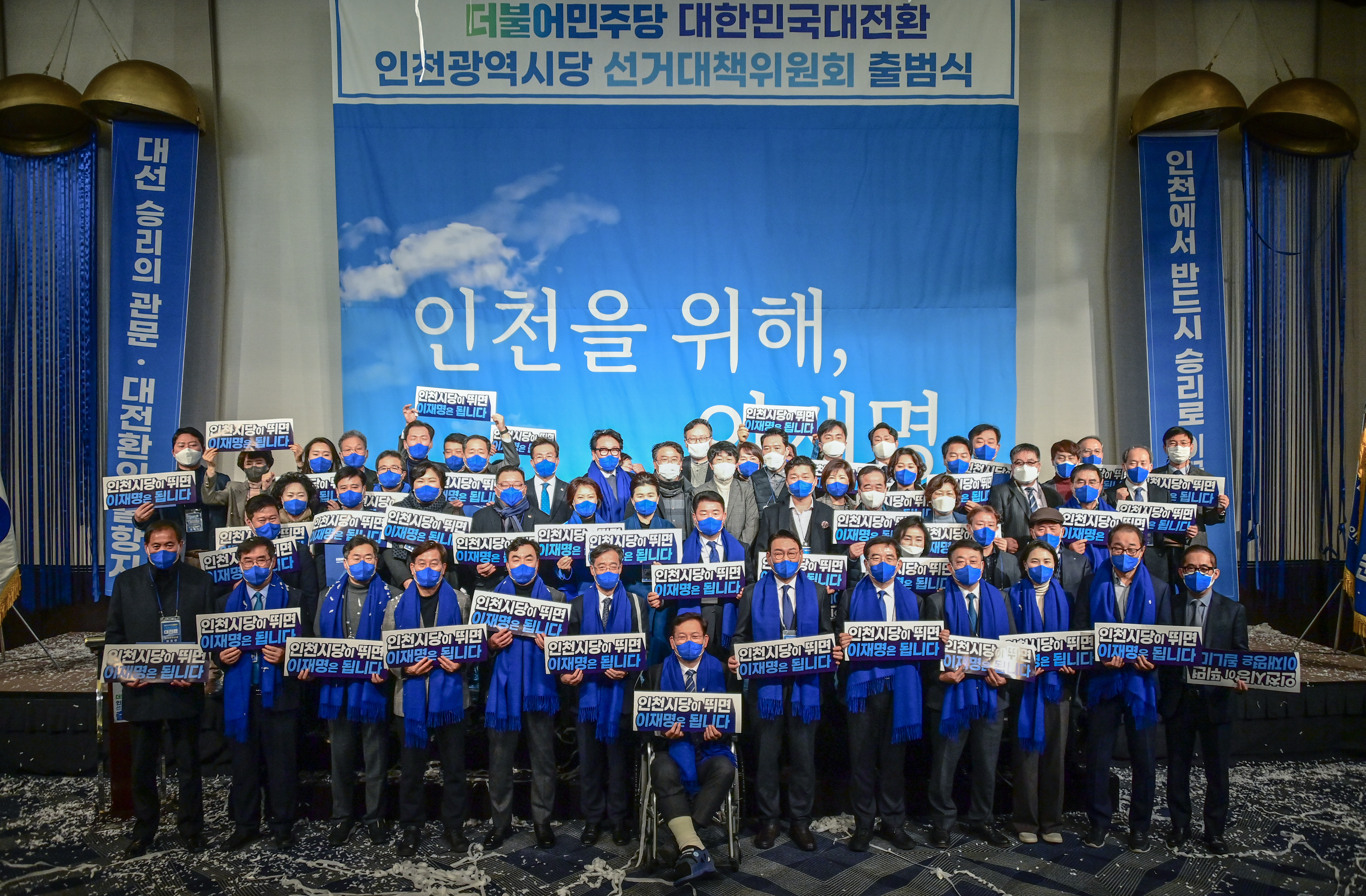 송영길 상임선대위원장이 2022.01.06.(목) 송도에 위치한 쉐라톤 그랜드 인천에서 열린 인천시당 선대위 출범식에 참석하여 축사를 하고 있다.