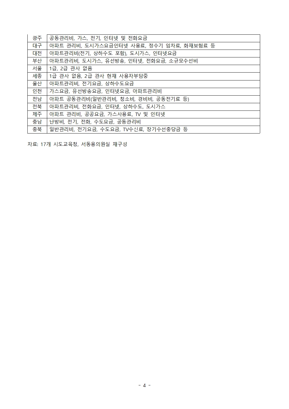 [서동용의원 보도자료] 교육청 1, 2급 관사 관리비 지원 특혜 여전