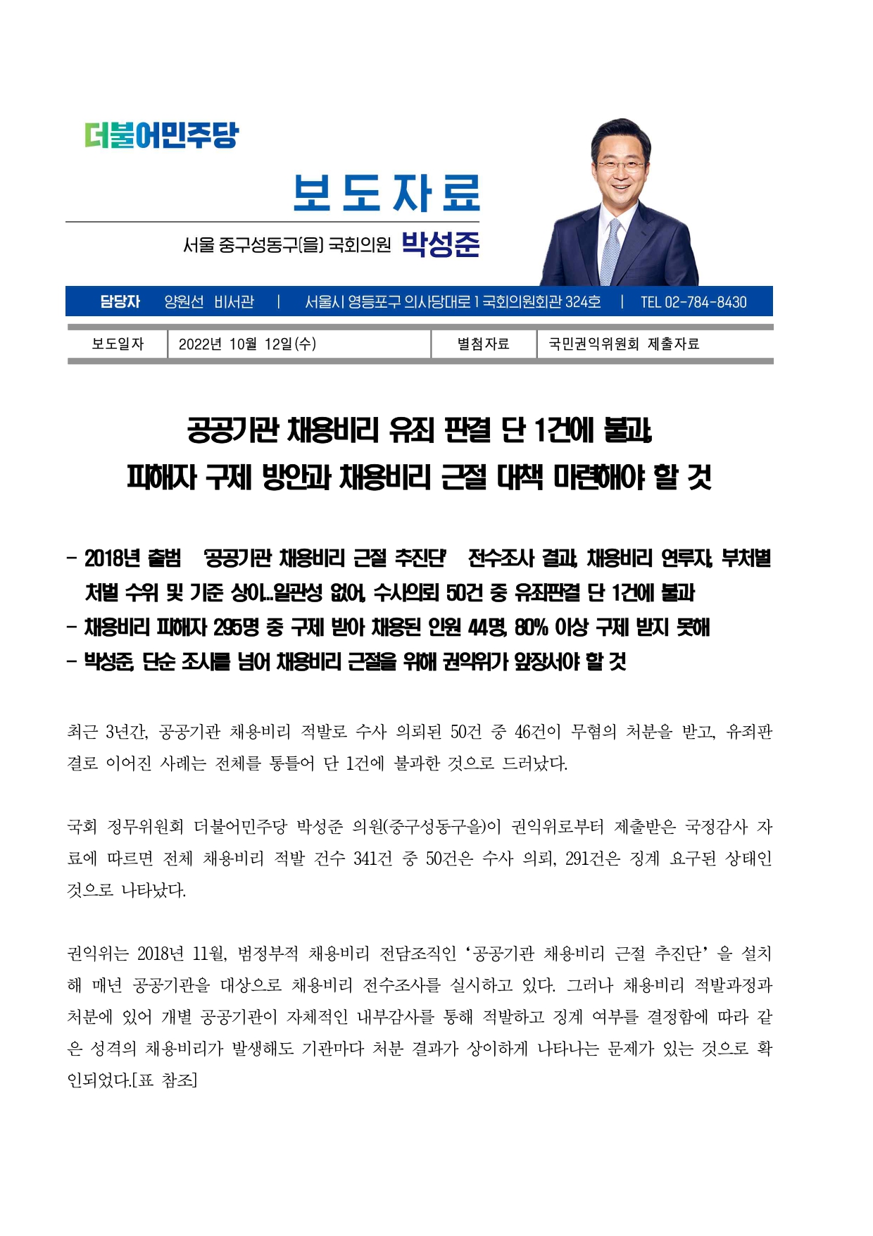 221012)_보도자료_박성준_의원_권익위_공공기관_채용비리_근절대책_마련해야.hwp