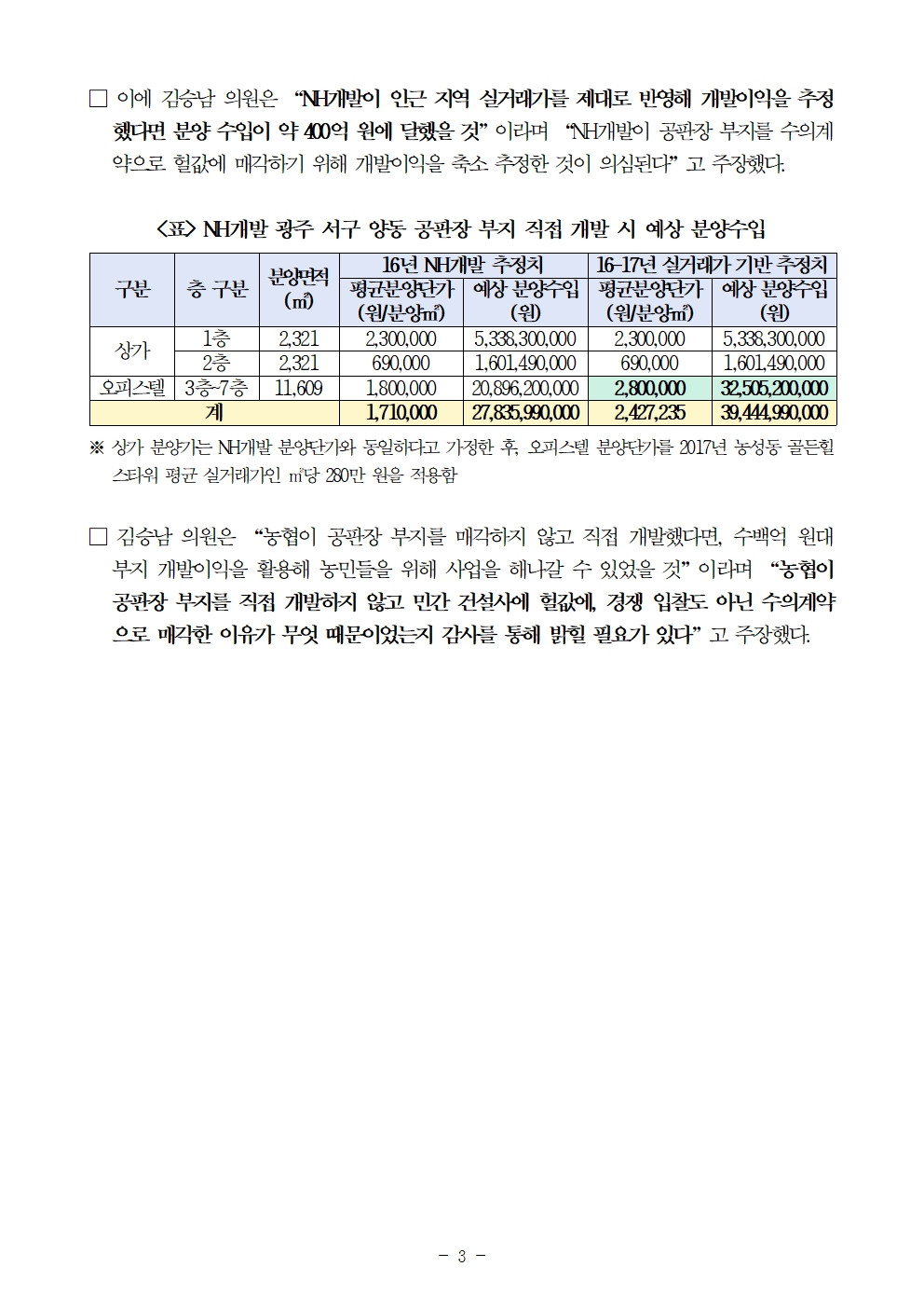 [김승남 보도자료] 농협 수의계약으로 공판장 부지 건설사에 헐값 매각