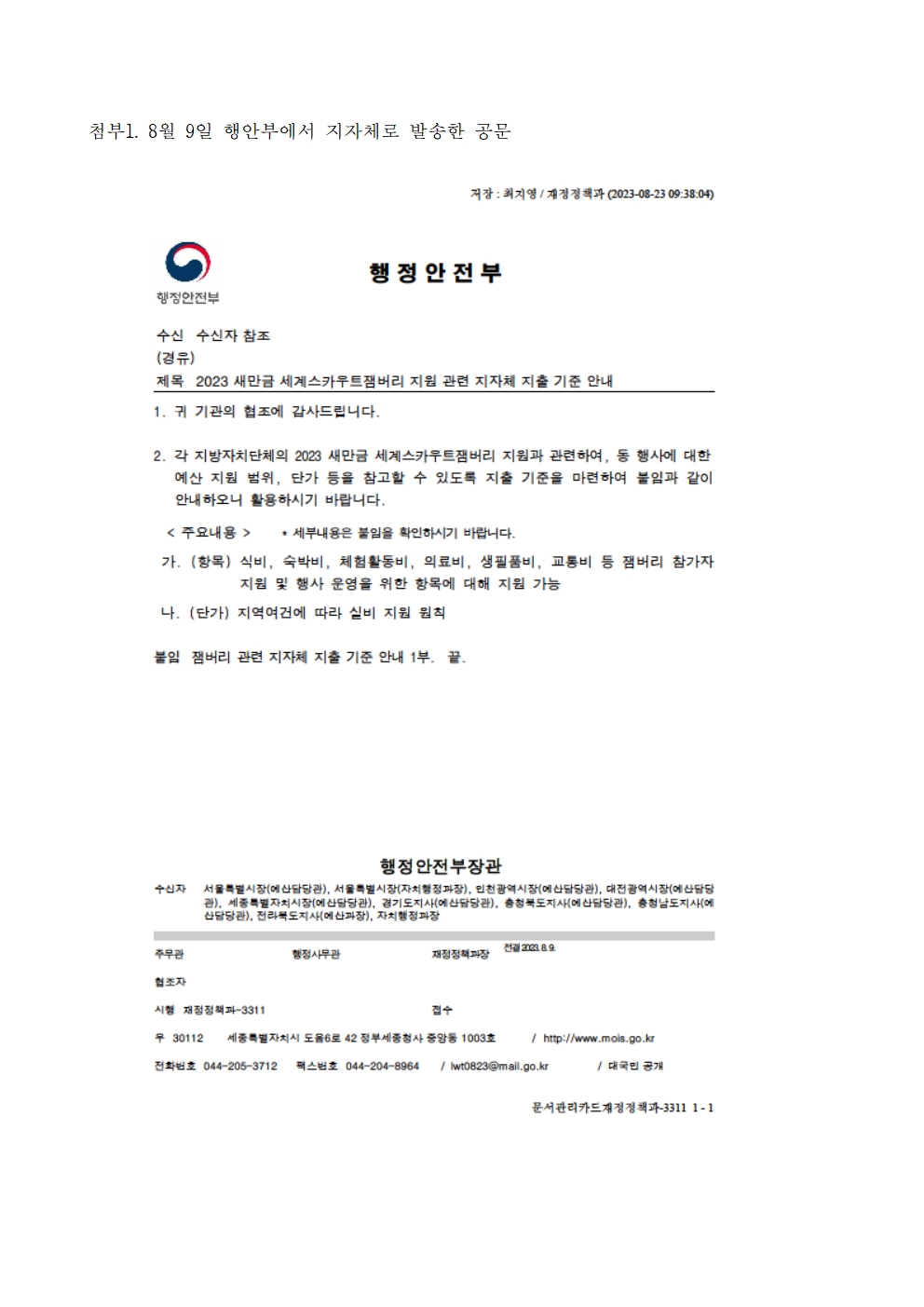 9. 231006_국감_서동용_국회의원서동용_잼버리 사후 정산 교육부 뒷수습.hwp