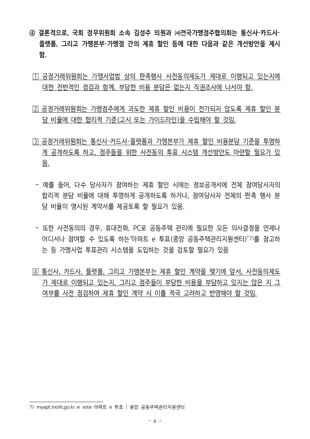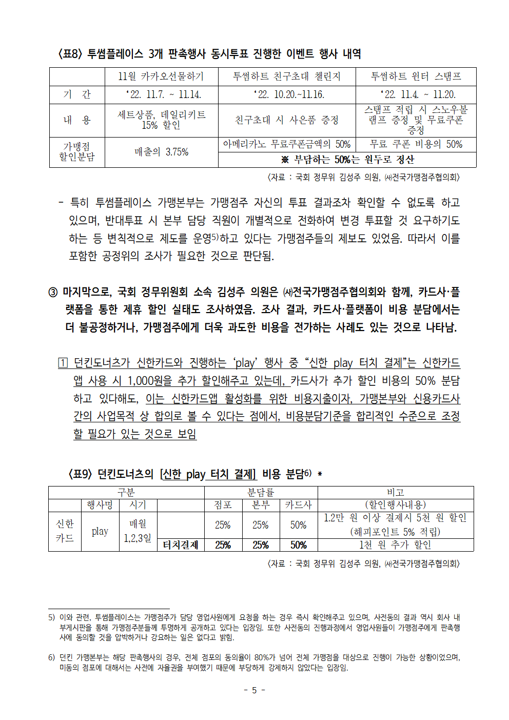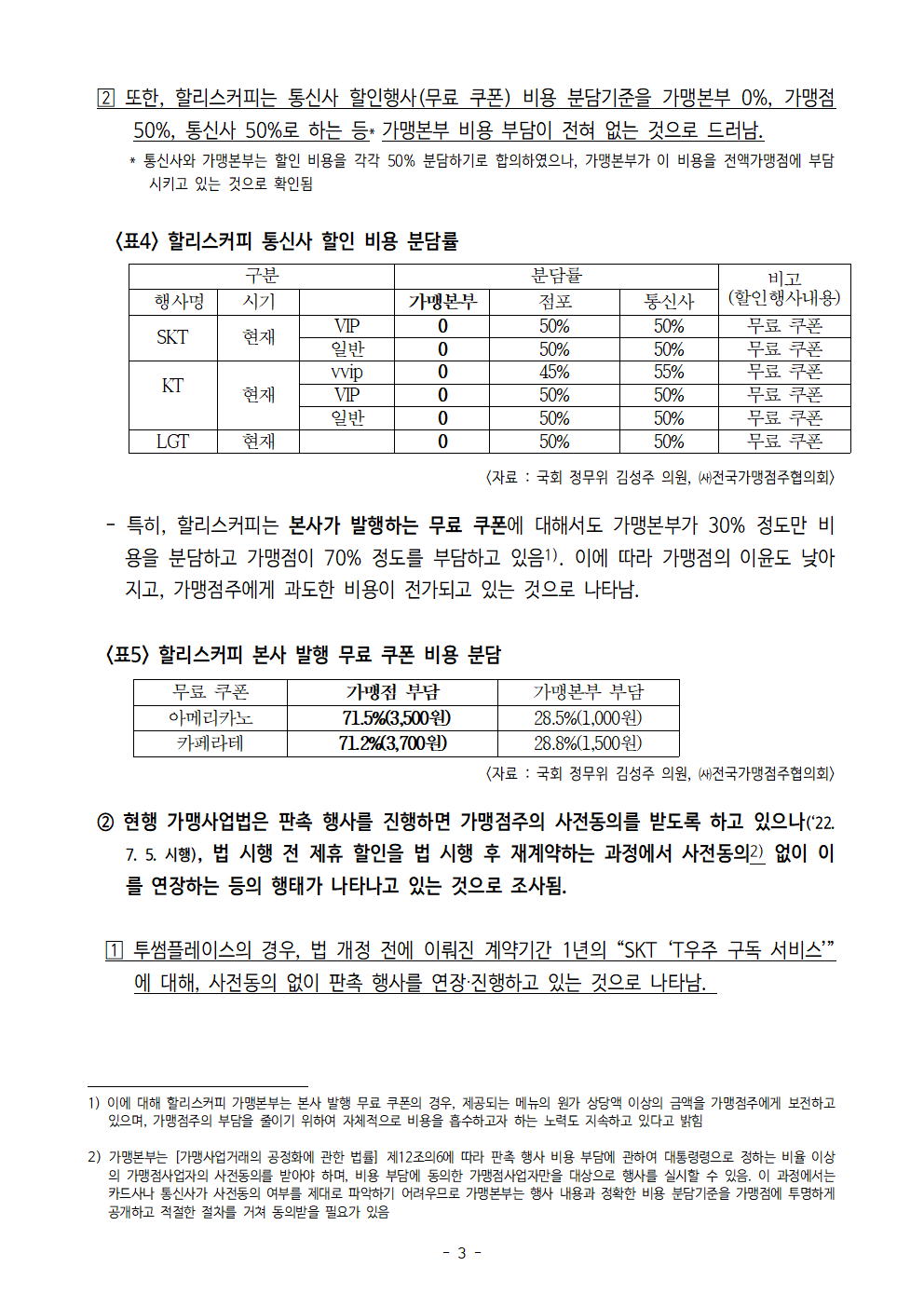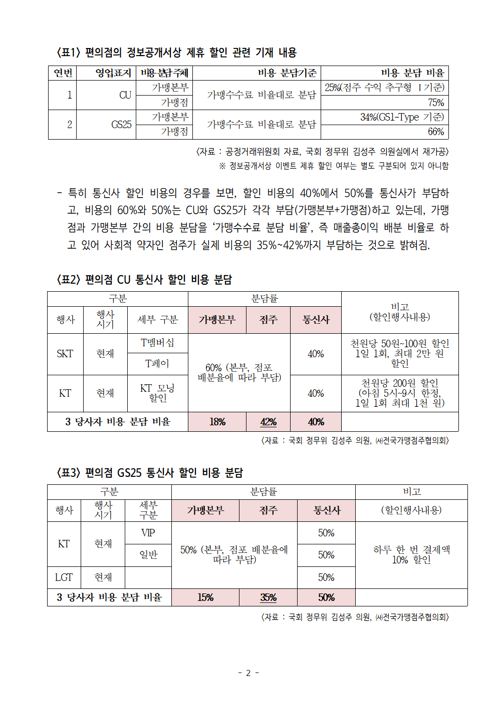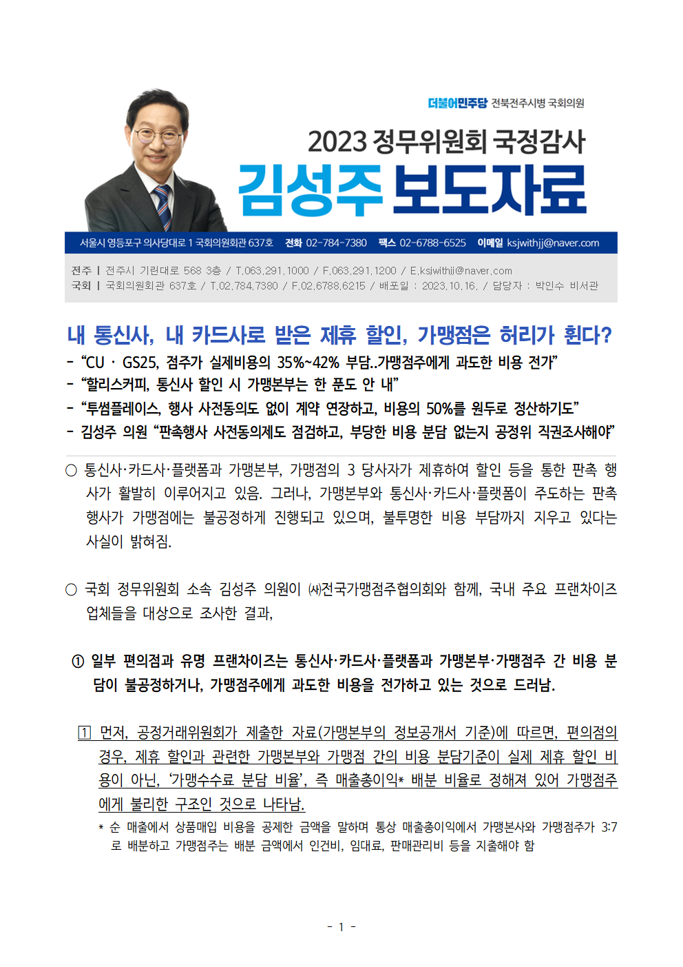 [김성주의원 보도자료] 내 통신사, 내 카드사로 받은 제휴 할인, 가맹점은 허리가 휜다?
