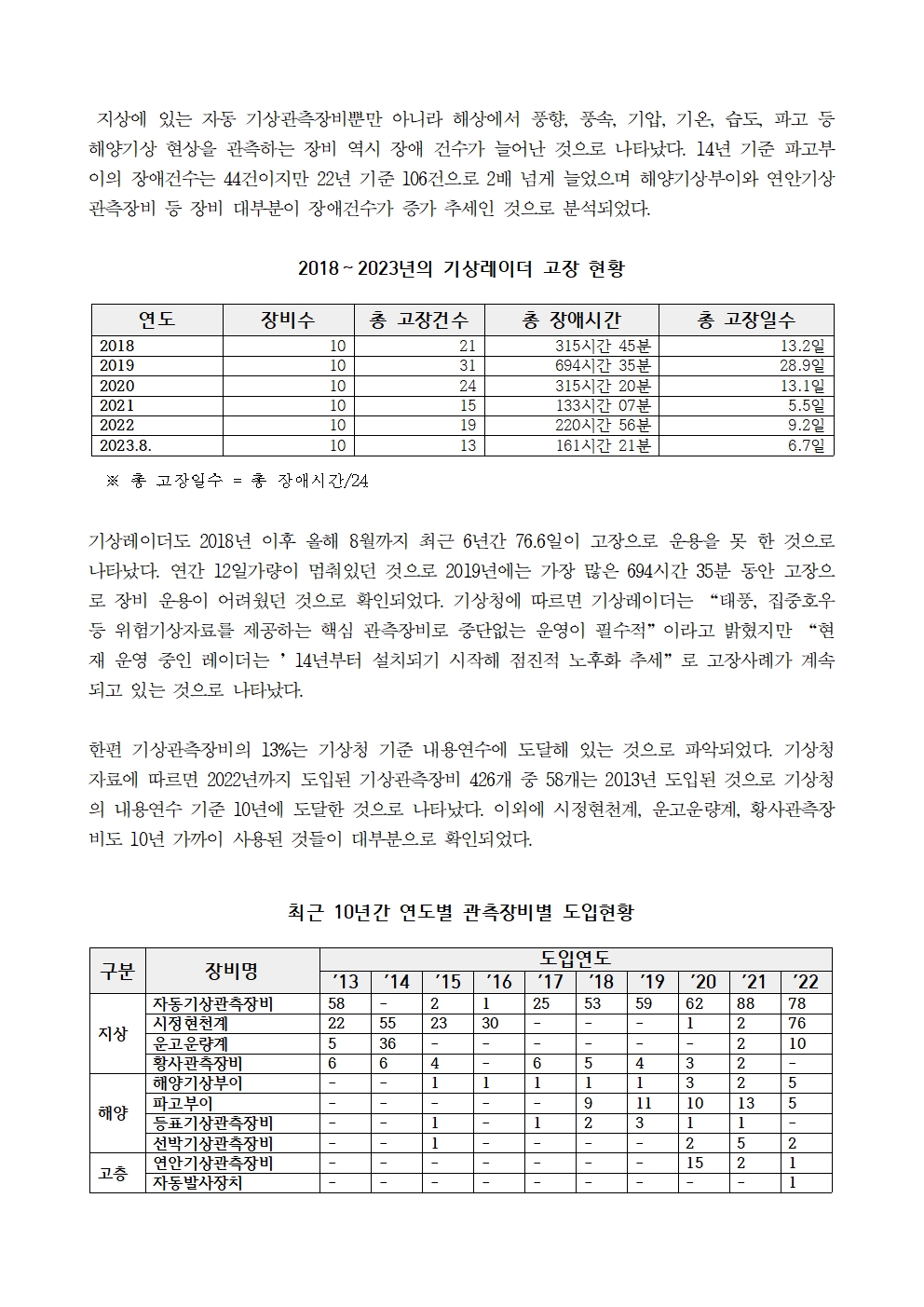 우원식보도자료_기상청_기상관측장비_고장늘어_배포본_.hwp