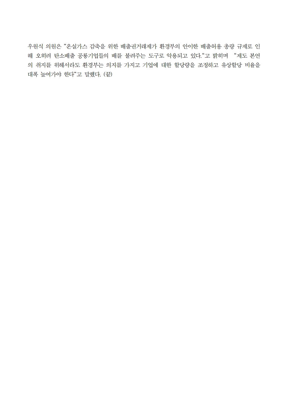 [우원식 의원 보도자료] 탄소배출권 거래로 상위 10개 기업 3,000억 원 이익, 하지만 산업계 감축노력은 배출권 대비 0.2%에 그쳐