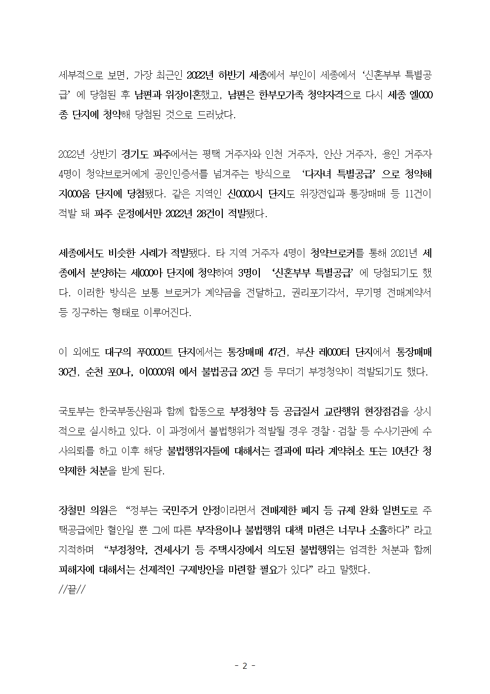 [국회의원 장철민 보도자료] 부정청약 적발 3년 새 44% 증가