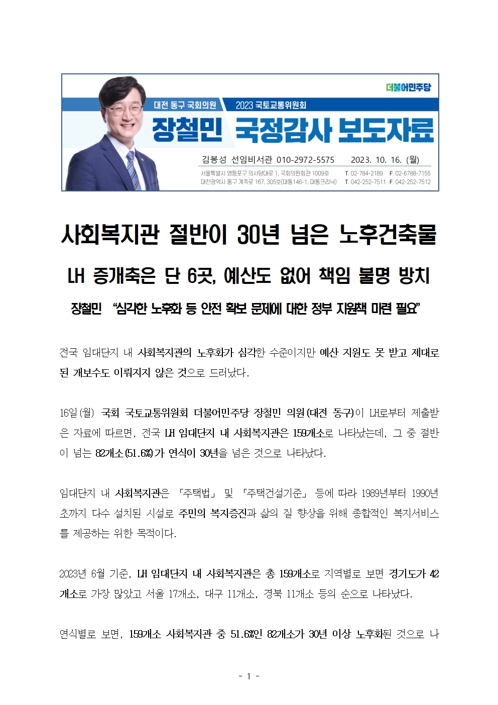 231016_장철민보도자료_사회복지관_절반이_30년_넘은_노후건축물.hwp