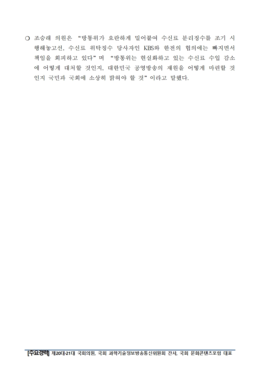 [조승래의원 보도자료] 분리징수 이후 KBS 수신료 수입 56억 감소