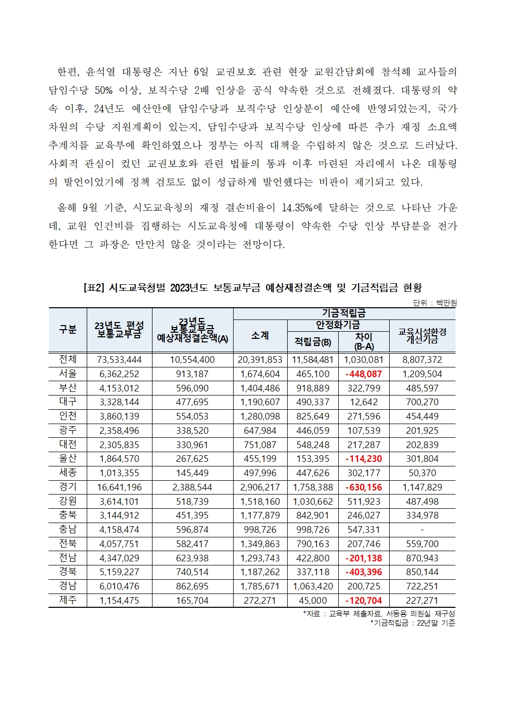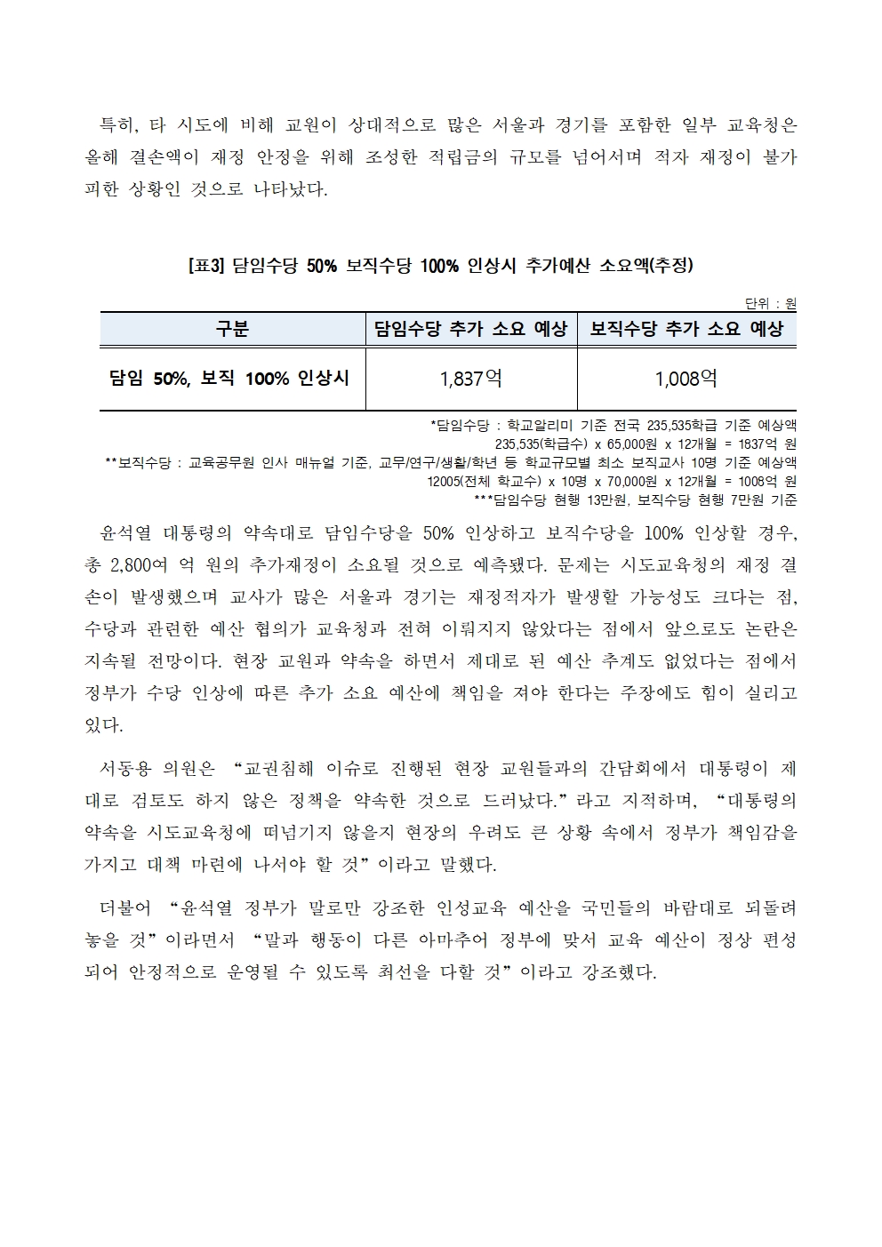 27. 231018_국감_서동용_윤정부_인성교육예산_삭감_교원_수당인상은_구체적_계획없이_약속한_대통령.hwp