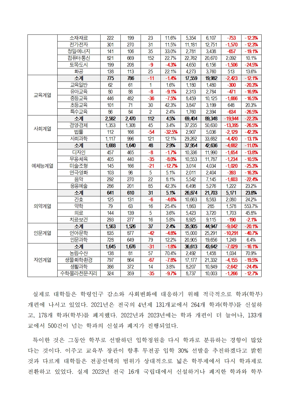 28. 231018_국감_서동용_공학‧의약계열_증가_인문‧사회‧자연계열_순수‧기초_감소.hwp