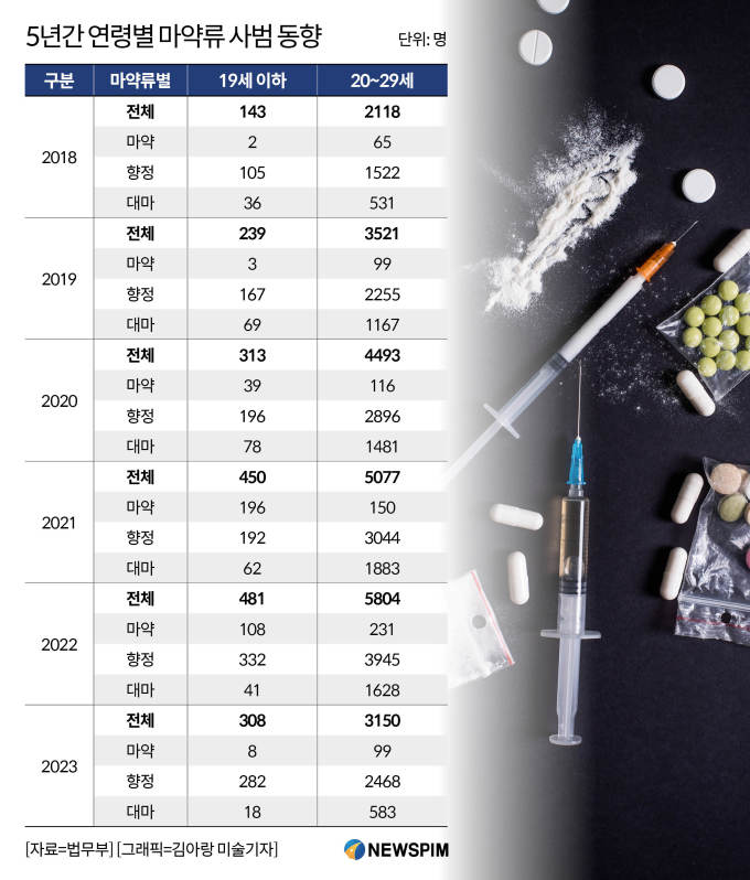 10~20대 마약사범 최근 5년 매년 증가...'향정 사범' 압도적