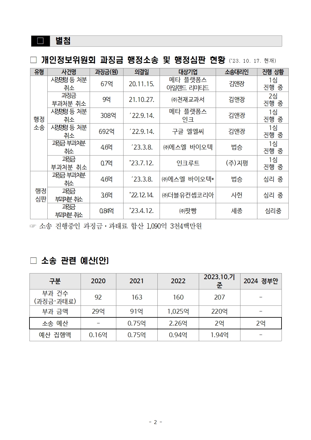 231019_윤영덕 의원실 보도자료_개보위 대형로펌 과징금 소송 가세.hwp