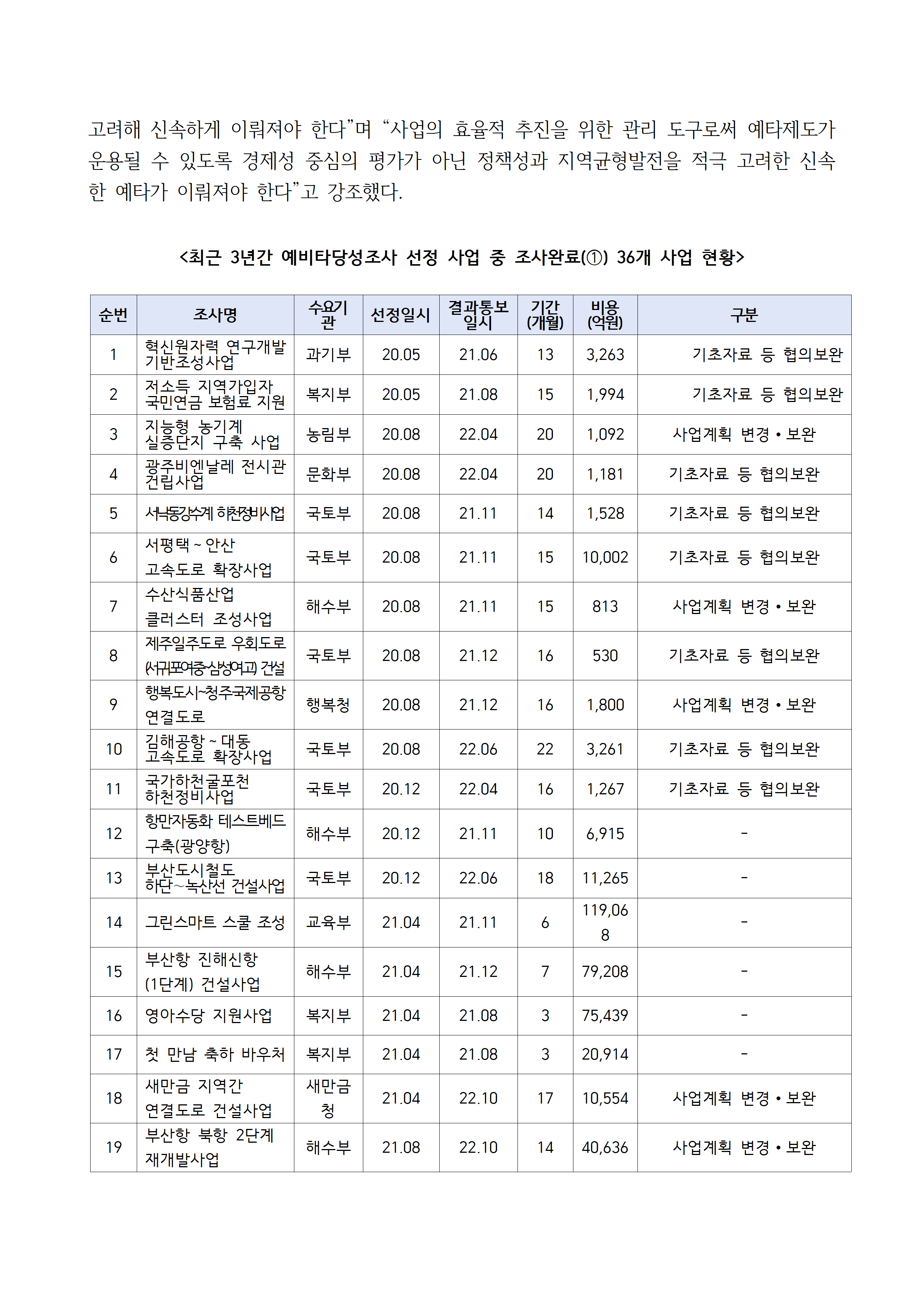 231001_국감보도자료_김주영_의원_예비타당성조사의_현주소와_개선방안①_최근_3년_조사완료_사업_58%_기준기간_초과.hwp