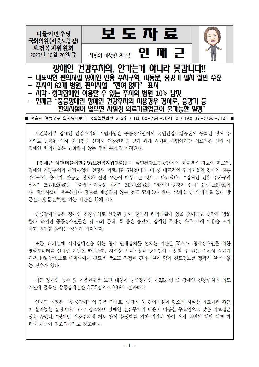 [인재근의원실 보도자료] 장애인 건강주치의, 안가는게 아니라 못갑니다!!