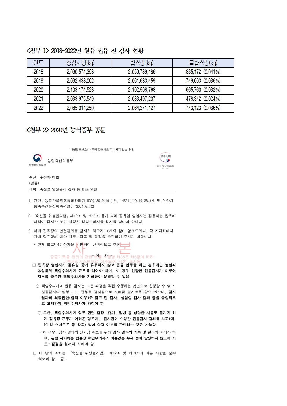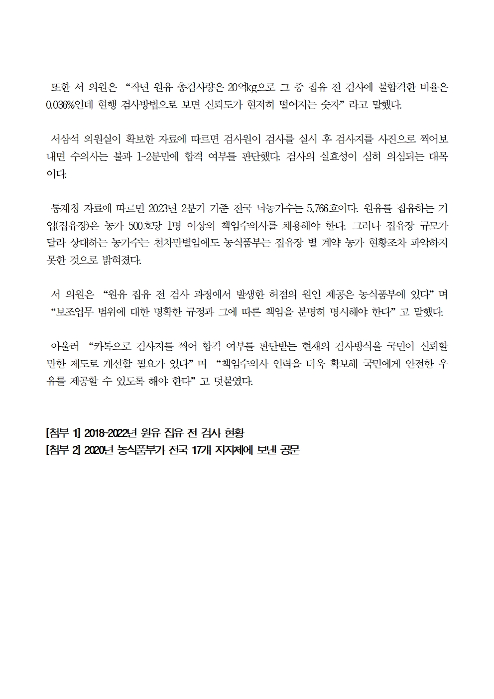 231023_[서삼석 국회의원] 서삼석 “원유 집유 전 검사 위법 행위의 원인제공은 농식품부 ”.hwp