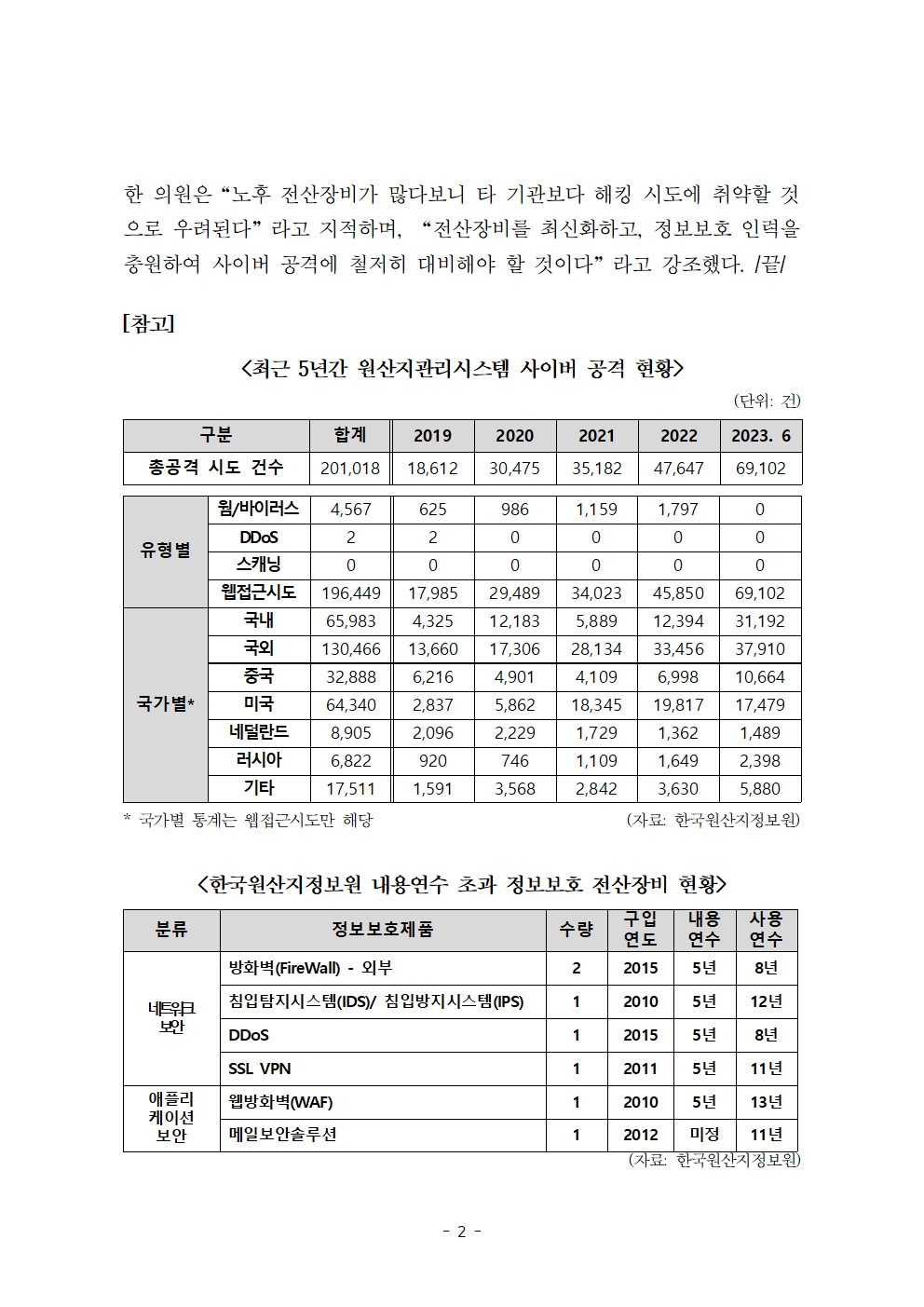 [한병도의원]2023기재위국정감사보도자료(25)_‘해커 놀이터’ 된 원산지관리시스템 지난 5년간 해킹시도만 20만 1018건.hwp