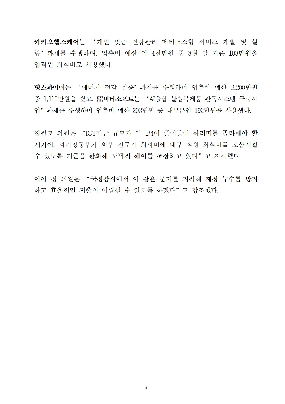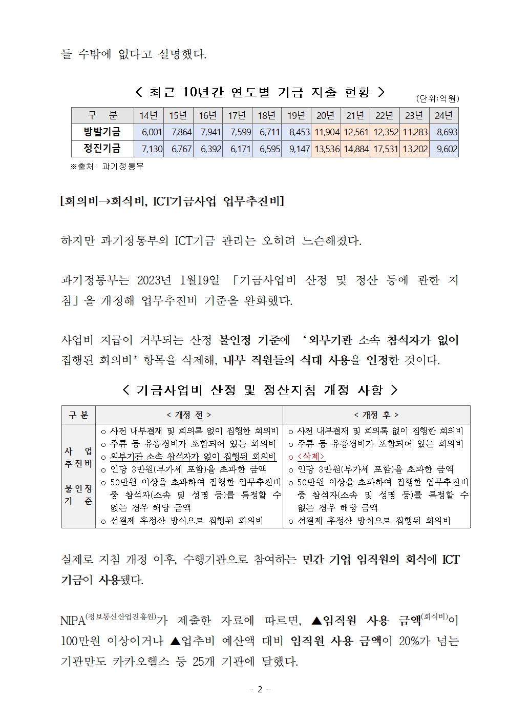 [정필모 의원 보도자료] 민간회사 회식비로 줄줄 새는 방발·정진기금