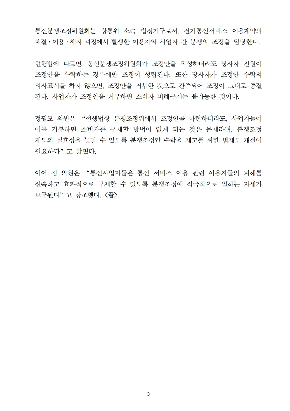 [정필모 의원 보도자료] 최근 5년간 통신분쟁조정안 거부로 조정실패 866건 !