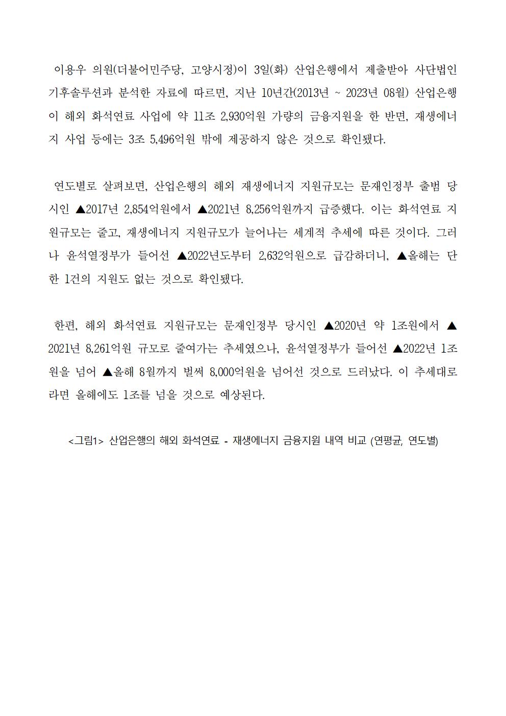 [보도자료] 산업은행 해외 재생에너지 금융지원 윤석열 정부 들어 급감 올해는 단 0원!.hwp