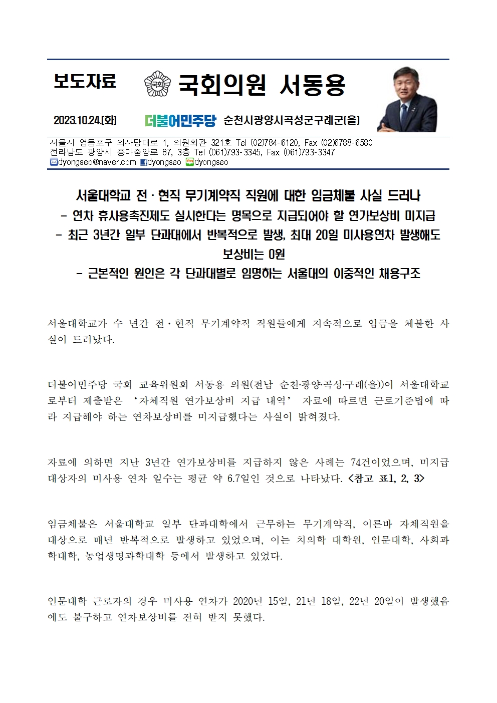 231024_국감보도자료_서울대학교_전·현직_무기계약직_직원에_대한_임금체불_사실_드러나.hwp