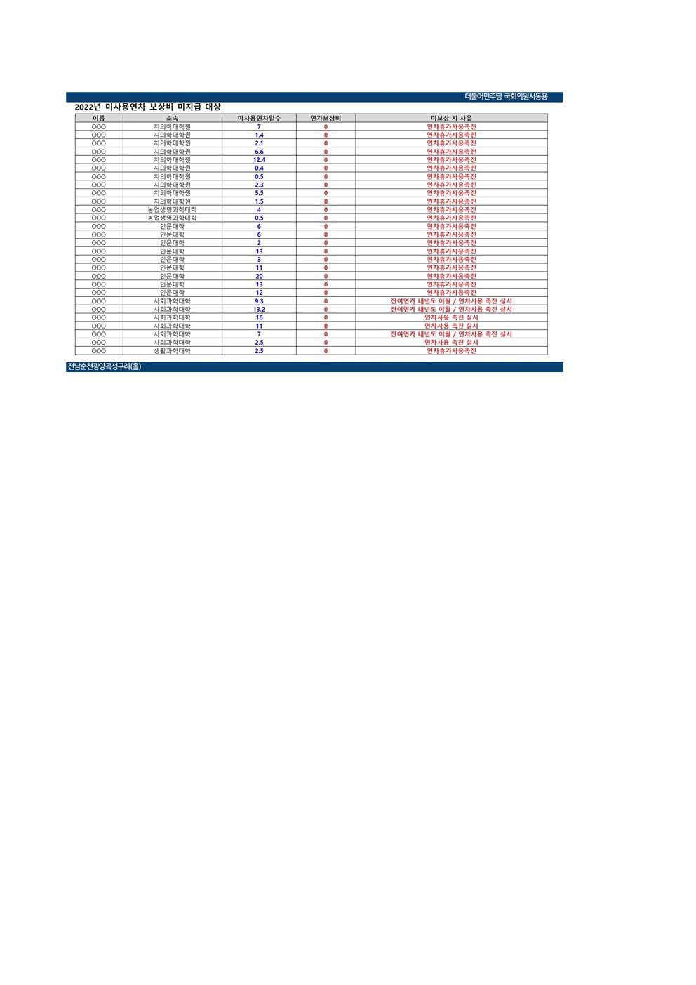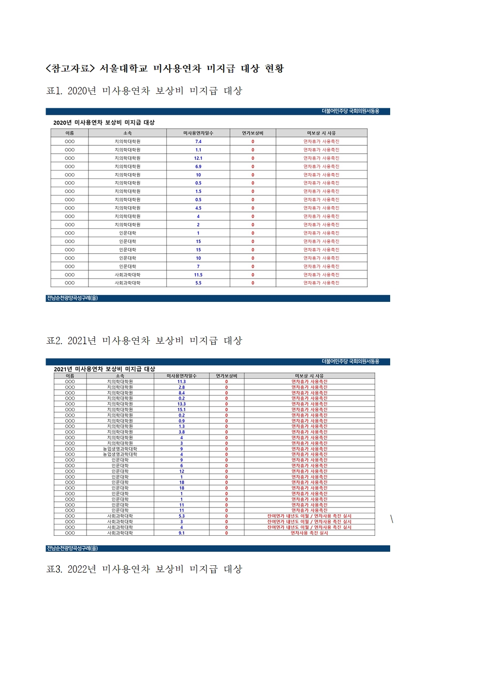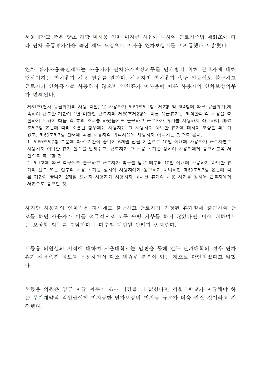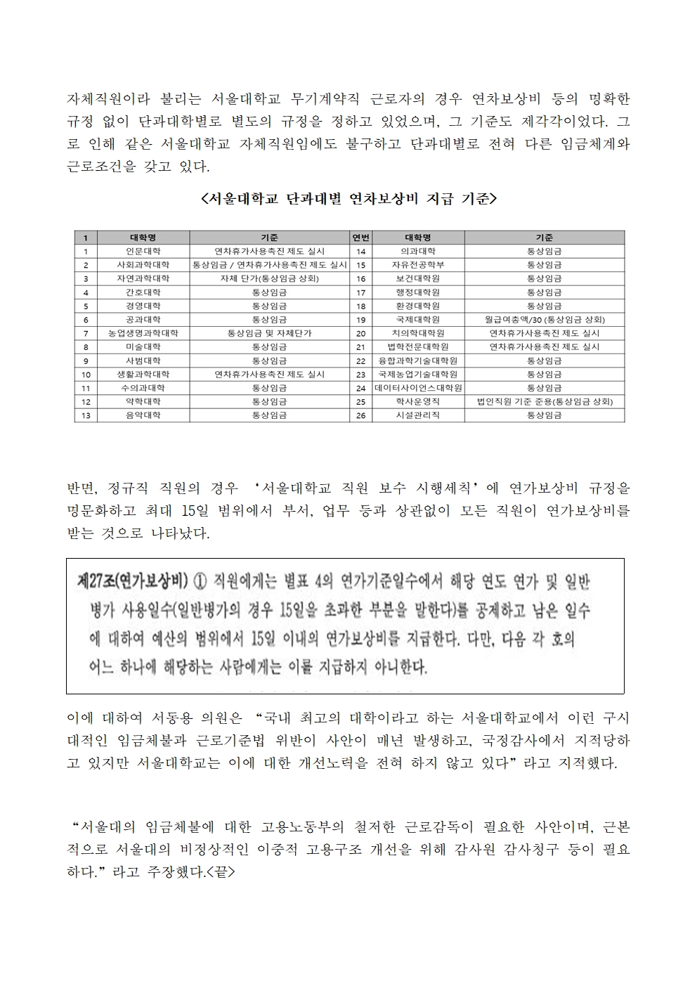 [서동용 의원] 서울대학교 전·현직 무기계약직 직원에 대한 임금체불 사실 드러나