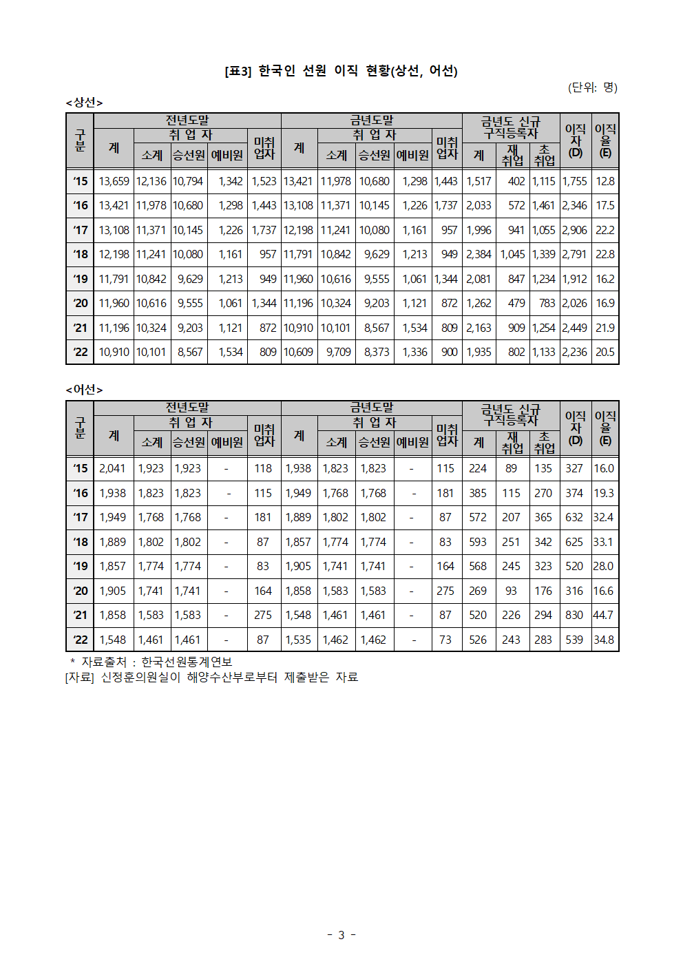 [신정훈 의원실 보도자료]지난해 선원취업 비자 외국인 중 불법체류자 8,732명... 8년새 1.8배 ↑