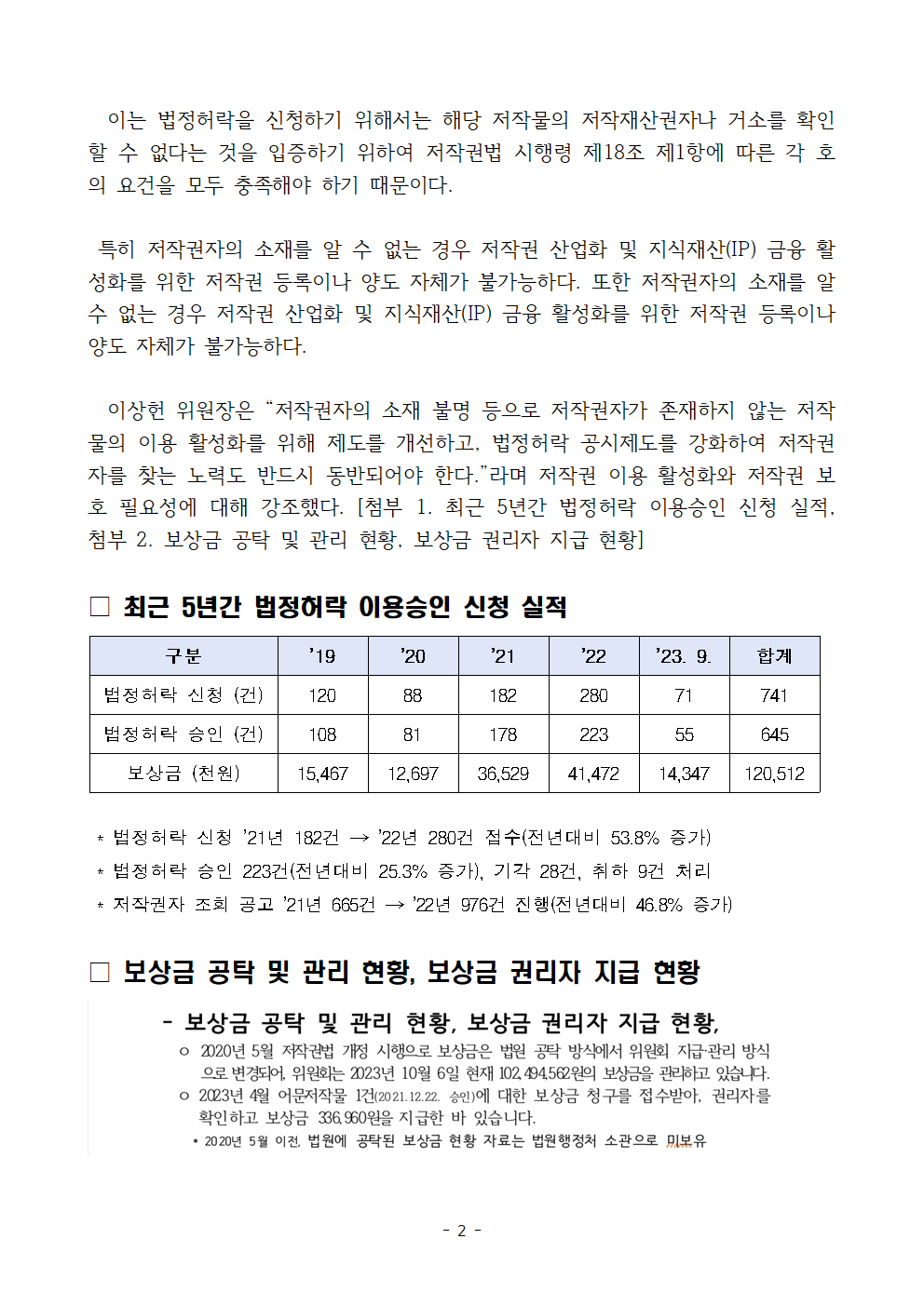 [국회의원 이상헌 보도자료] 소재를 알 수 없는 저작권자의 저작물 이용 5년간 645건에 달해… 저작자 확인은 단 1건에 불과!